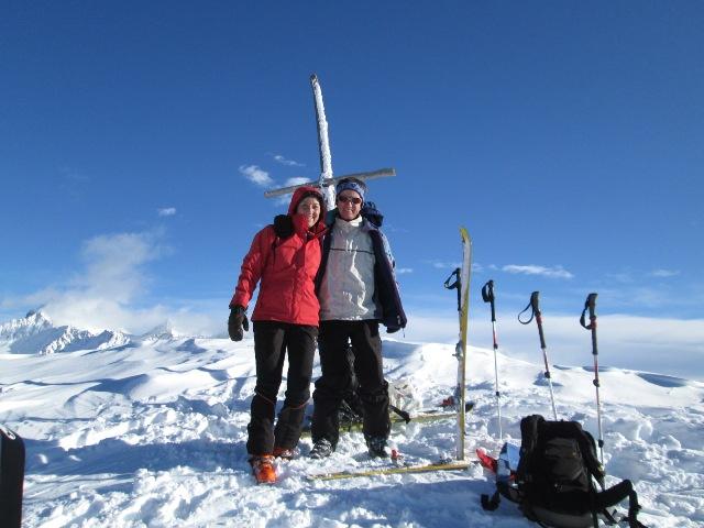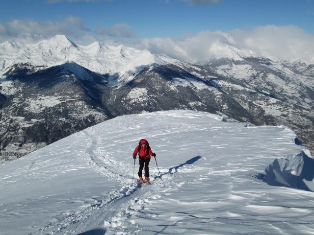 Partenza da Ozein intorno alle 10 con temperatura decisamente frizzante (-6°), in basso l’innevamento non è molto abbondante, poi man mano che si sale la situazione migliora e sul pendio finale è decisamente abbondante. La nevicata di venerdì ha apportato circa 15-20 cm in basso e 30-40 in alto. Traccia praticamente perfetta fino in cima, solo sulla dorsale finale il vento ha spazzato quasi tutta la neve e quindi ci sono molte pietre. Arrivati in vetta intorno alle 13.15, siamo scesi quasi subito a causa del freddo polare e del vento, in ogni caso meno forte del previsto…