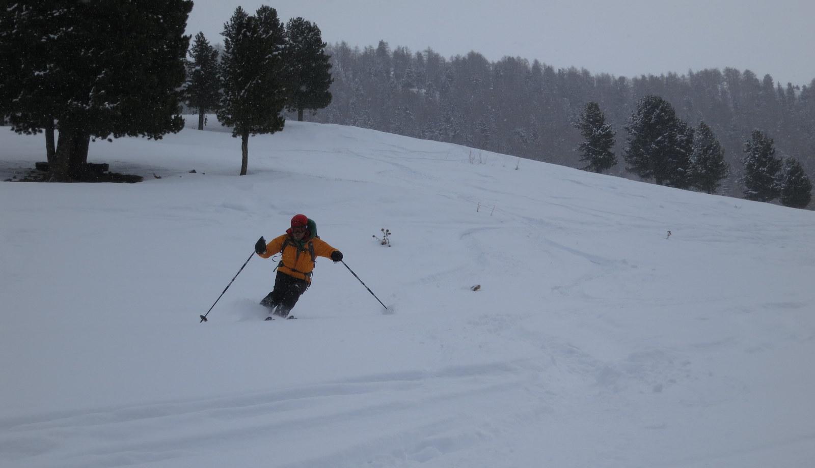 Meglio delle previsioni! Abbastanza freddo alla partenza -4 e tempo discreto sino alle 11 . Noi siamo pariti alle 9, 40 e siamo scesi poco dopo le 12,15 con visibilità ancora discreta , poi ha cominciato a nevicare leggermente . La neve era molto bella da cima a fondo anche se un po segnata da numerosi passaggi . Molte persone sul percorso .