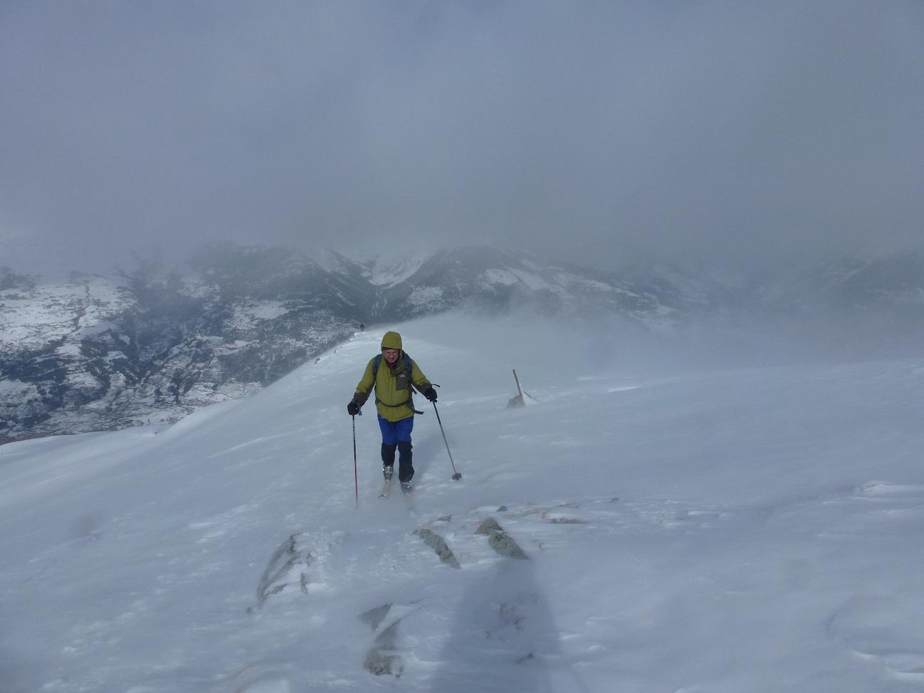 come ha già detto Giovil, peccato che in cima, era pure difficile togliere le pelli con il vento gelido che spostava anche lo zaino, neve da urlo da cima a fondo, anche questa volta siamo scesi verso l’alpeggio della Pira e poi Bardoney e la Roncaille e giù sulla Premou e poi sulle ex piste di Ozein. grazie a Enrico e Giordano.