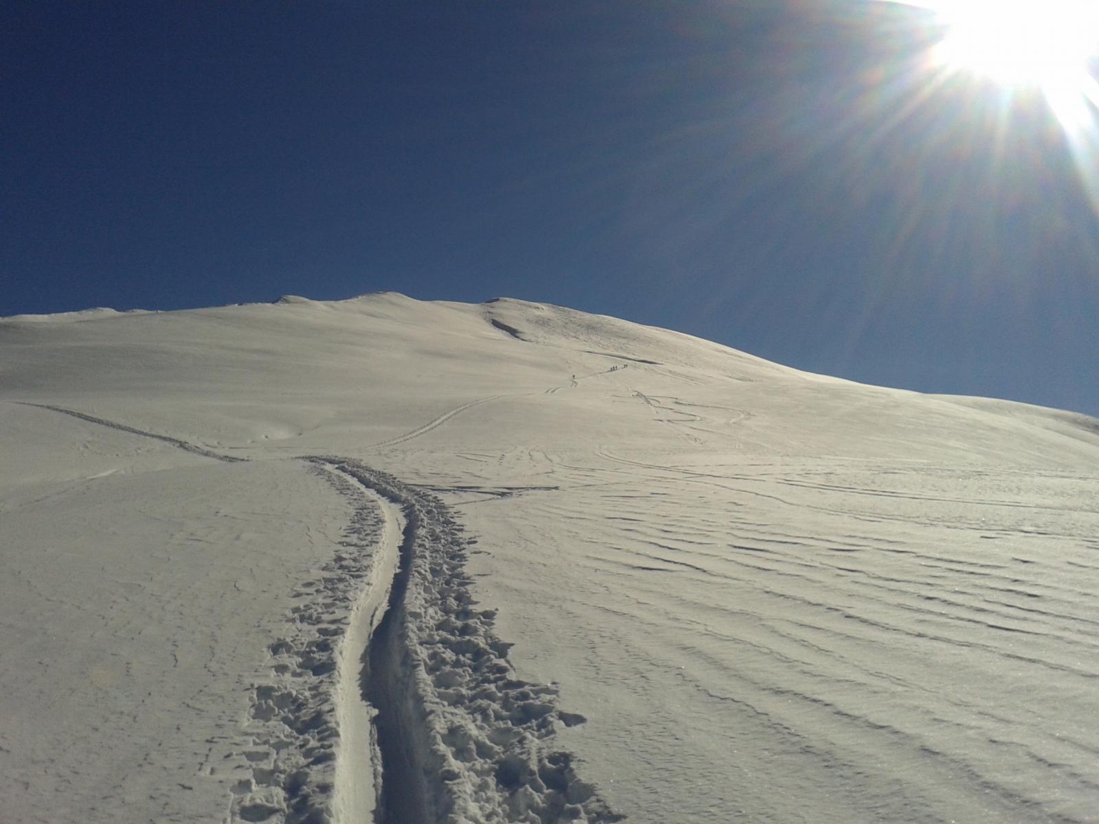 Ancora in buone condizioni, ma ovviamente molto arata. Partito dal piazzale dopo il rpimo tornante sopra Ozein, sono poi sceso tutto a sinistra verso l’alpeggio la pierre e poi nel bosco.