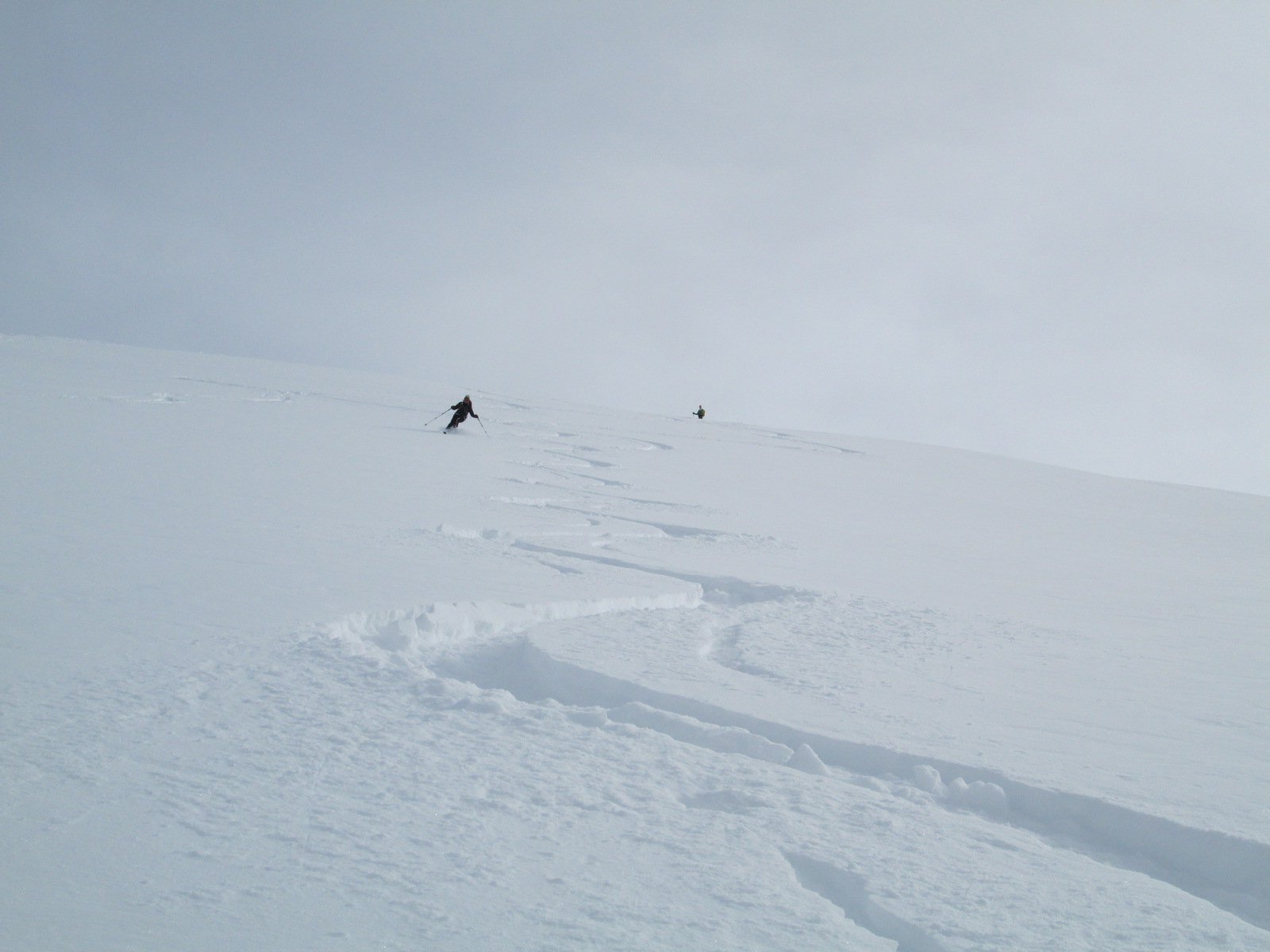 Gita più che soddisfacente e bella discesa, ottima nella parte alta, poi neve sempre più pesante man mano che si scendeva (all’auto alle 14 c’erano 5°!!!!). Meteo che ha tenuto, in pratica si è rannuvolato quando siamo arrivati alla macchina…