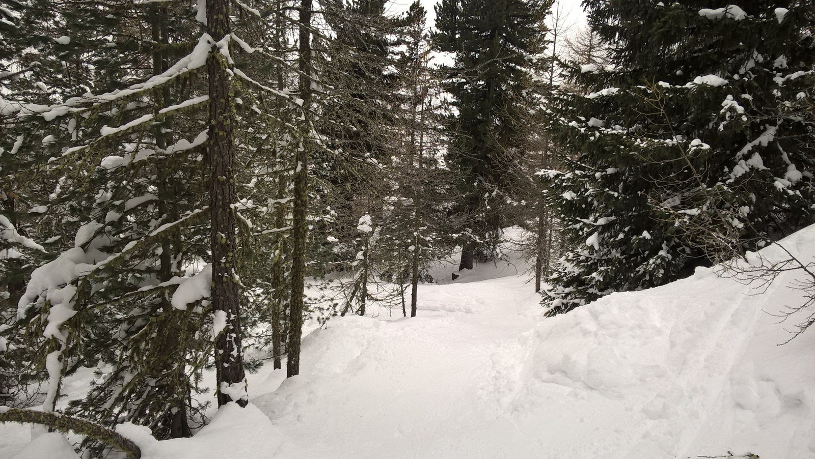 Dalle baite abbiamo alternato strada e belle radure con neve che passava dalla crosta alla farina pesante nel giro di pochi metri, in ogni caso una bella discesa e gita da consigliare.