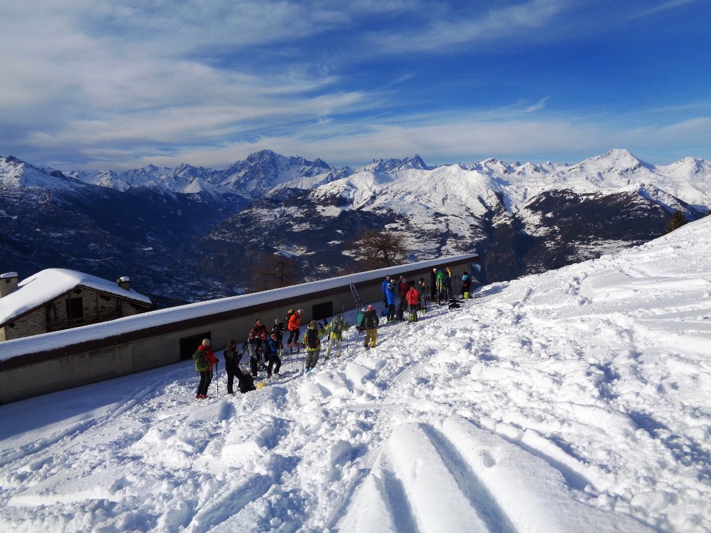 Solo ci siamo complicati la vita; anziche’ parcheggiare a Daillet dove l’asfalto era un po’ ghiacciato, abbiamo proseguito fino a Turlin pensando di risparmiare 100m di dsl; in realta’ abbiamo dovuto percorrere una noiosa stradina di collegamento tracciata da racchette.