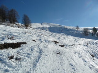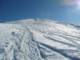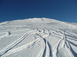 Partito alle 10… neve continua sulla stradina nei tagli inizia a scarseggiare anche per salire nella parte bassa. Pala finale stra tritata ma cercando qualcosa di buono si trova ancora. Allora tre giretti molto belli e poi rientro seguendo i toboga nei tagli o la stradina.
