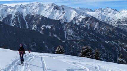 Ad inizio gita veramente poca neve, un po’ più di neve arrivati circa a metà dislivello. Bellissima neve polverosa da dopo le ultime malghe.