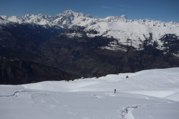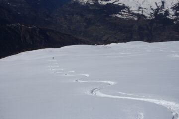 Tornato a Pointe de la Pierre dopo ben 6 anni, a detta di alcuni nella stagione 23/24 solo a marzo è diventata in condizione. La prima parte della discesa sarebbe 5 stelle, qualcuno ha pure ripellato; la seconda parte fino al bosco oggi è ancora farinosa compatta; l’ultimo terzo meglio fare la stradina.