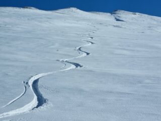 Oggi 4 skialp. Una decina di tracce vecchie già parzialmente coperte dall’ultima nevicata.