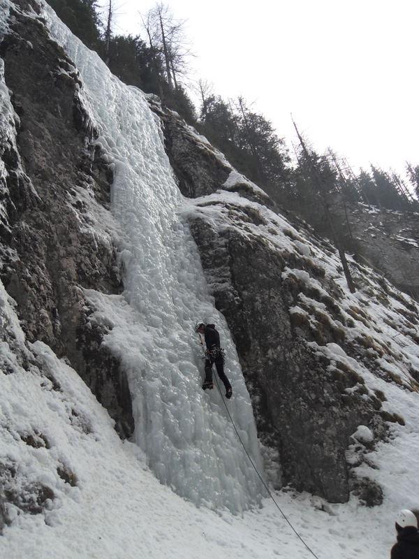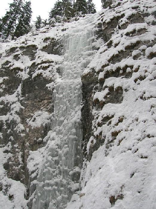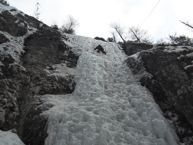 Monotiro molto ripetuto .Si trova 20 m.prima di Excalibur sulla sx. Poco ghiaccio e molto gradinato