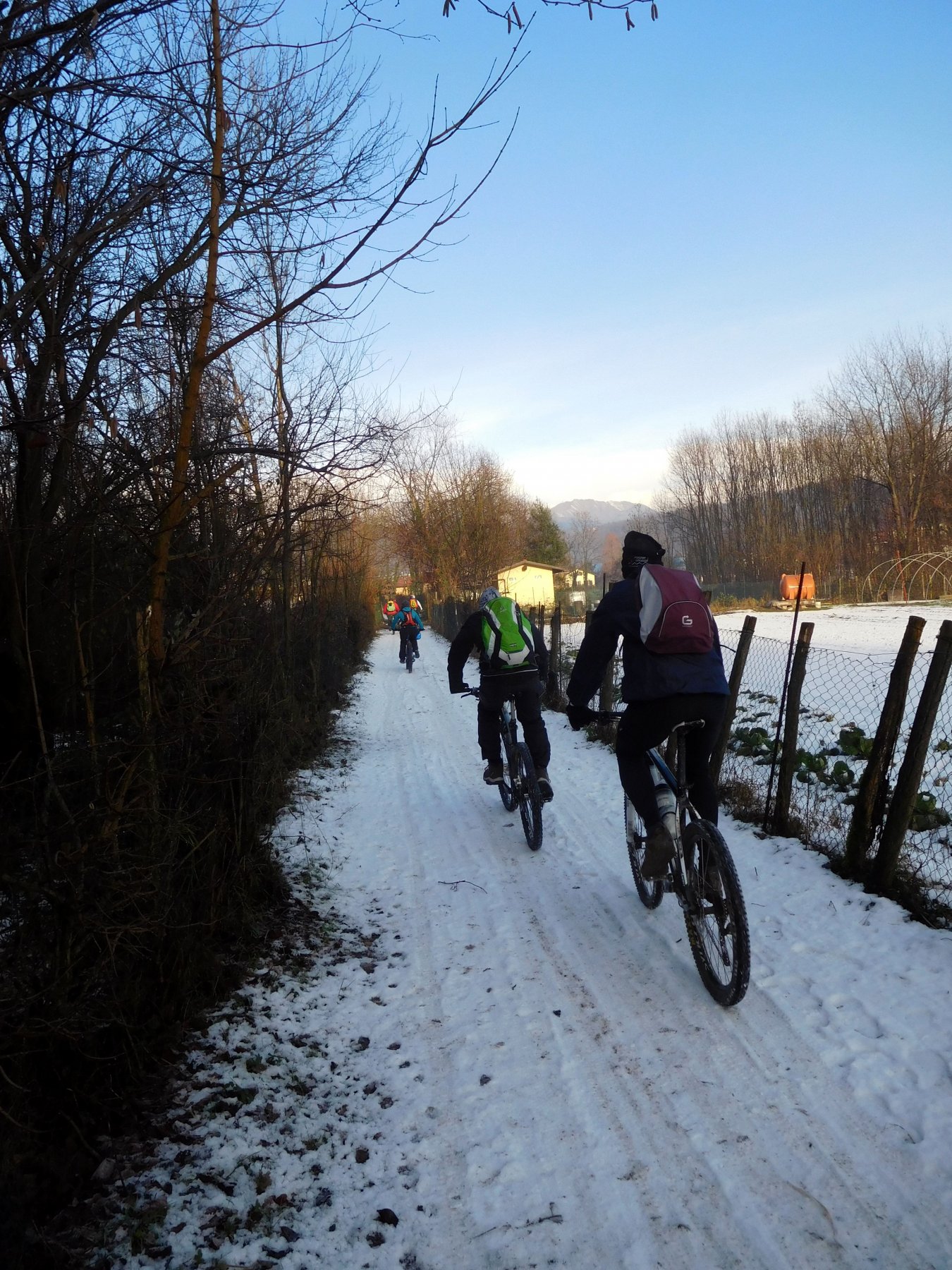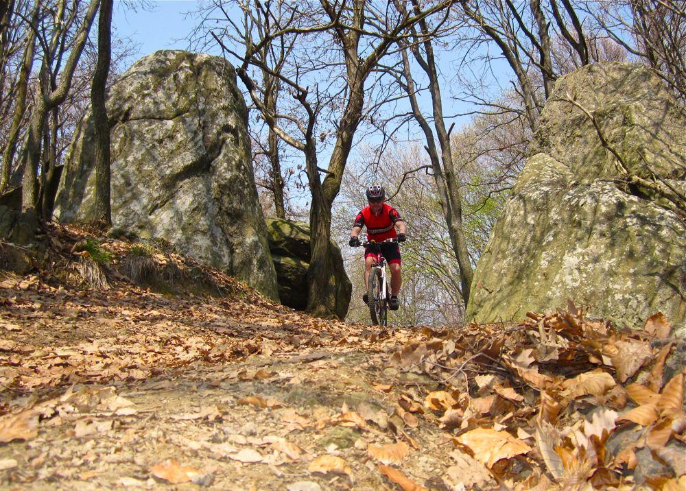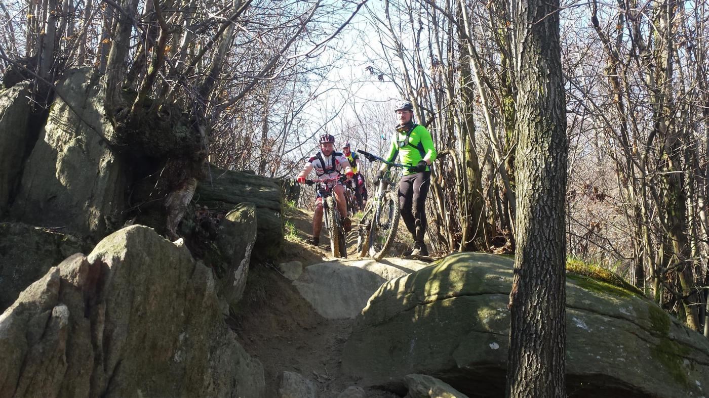 Poco prima del cartello parte il sentiero dei Cinghiali che si sviluppa per circa 2,5 km su fondo prevalentemente terroso. La prima parte è più scorrevole con solo qualche radice, poi diventa più impegnativo per tratti scavati dall’acqua, saltini su roccia e pendenze più sostenute. Quelli bravi la fanno interamente in sella. Solo brevi passaggi di S2 e uno di S3. Si prosegue poi con pendenze più dolci attraversando il bosco delle fate. Tratto in piano molto scavato dall’acqua e poi facile e scorrevole fino al termine a Sangano dove ci si immette sull’asfalto di Via delle Prese. Si svolta a sx , alla rotonda si imbocca la Via Merlino che diventa poi strada bianca si passa Regione Galli, Villaggio la Quercia e infine Piossasco.