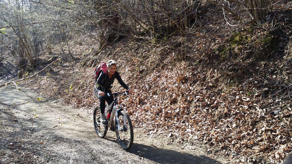 Partiti da PIOSSASCO e seguite fedelmente le precise indicazioni. Salita su sterrato panoramico in ottime condizioni su pendenza costante e mai troppo impegnativa. Discesa sul SENTIERO DEI CINGHIALI che, in realtà, non mi ha entusiasmato più di tanto e che sicuramente si sarà deteriorato nel tempo a causa dei frequenti passaggi; alcuni tratti, con curve guidate e tornantini non troppo stretti sono divertenti e anche qualche passaggio un po’ tecnico fa salire l’adrenalina, ma vi sono, per me troppi, tratti poco scorrevoli e con “ruere” che non danno continuità alla discesa.