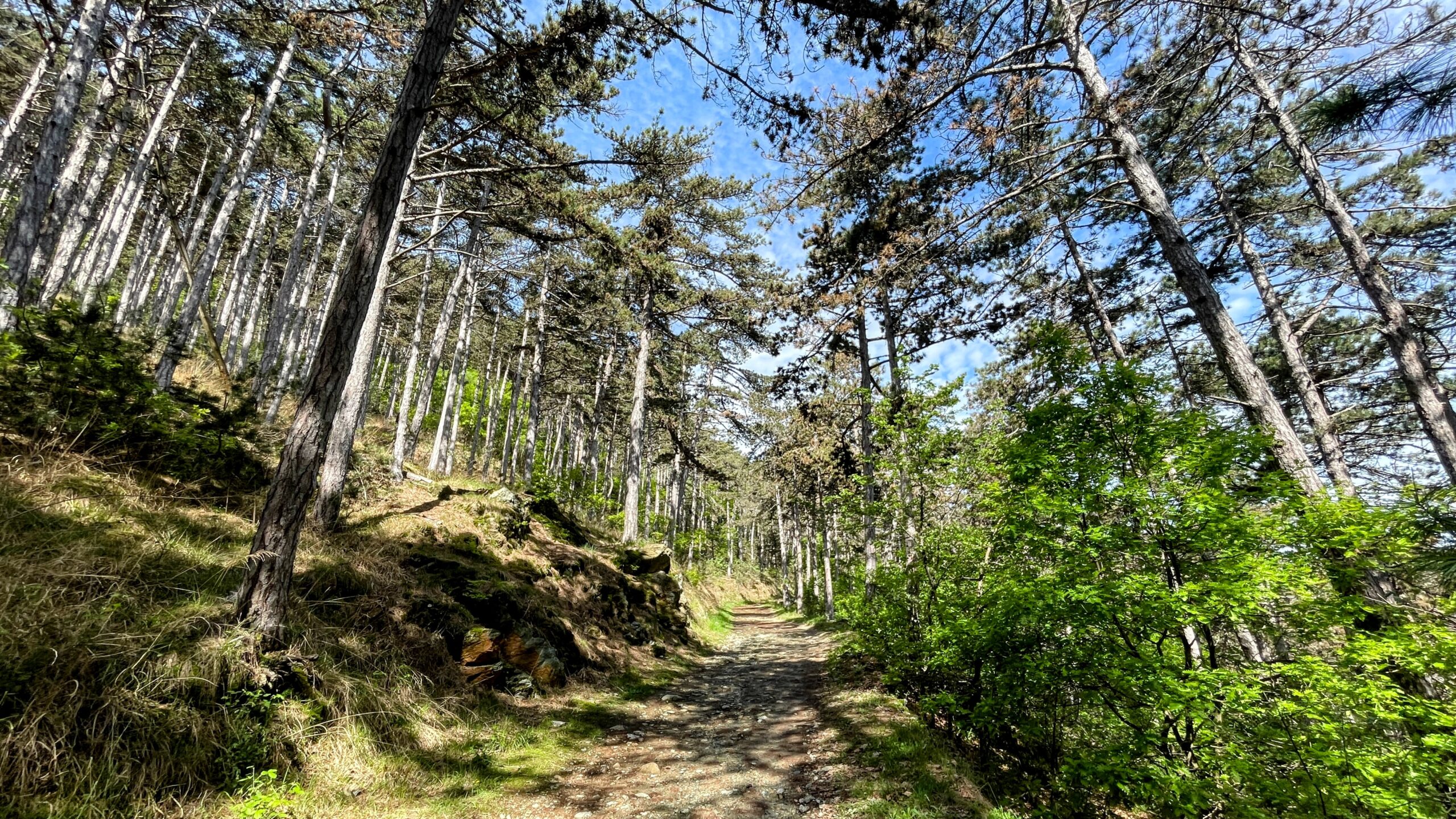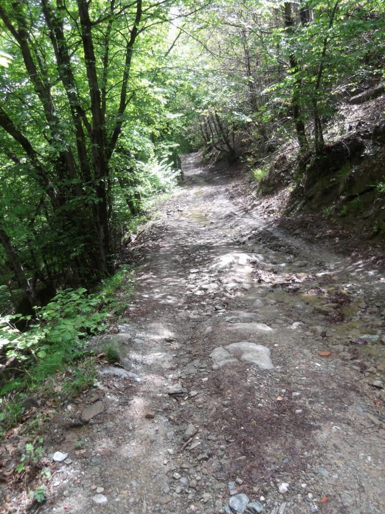 Dopo aver ammirato il panorama proseguiamo a ritroso sulla sterrata nuovamente al Colle della Serva e poi seguendo la sterrata verso nord tornante dopo tornante fino alla Chiesa di San Valeriano.