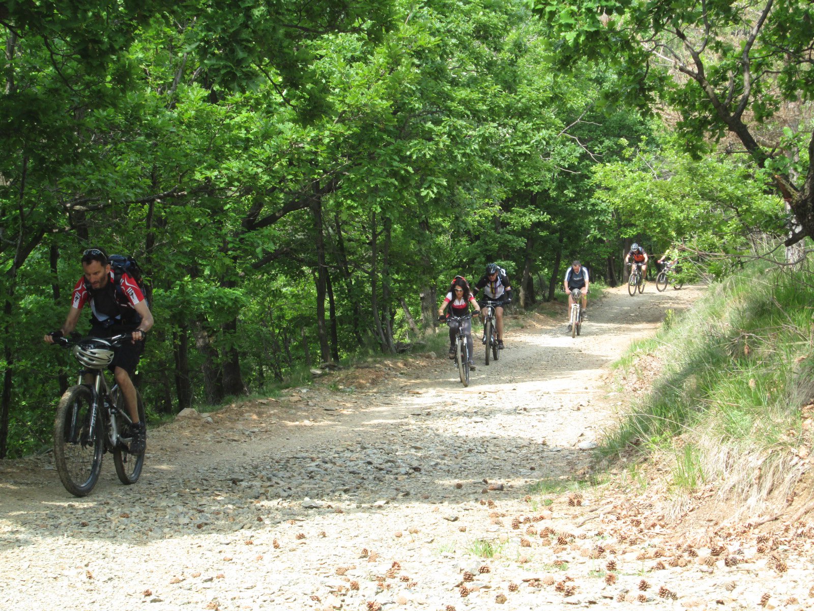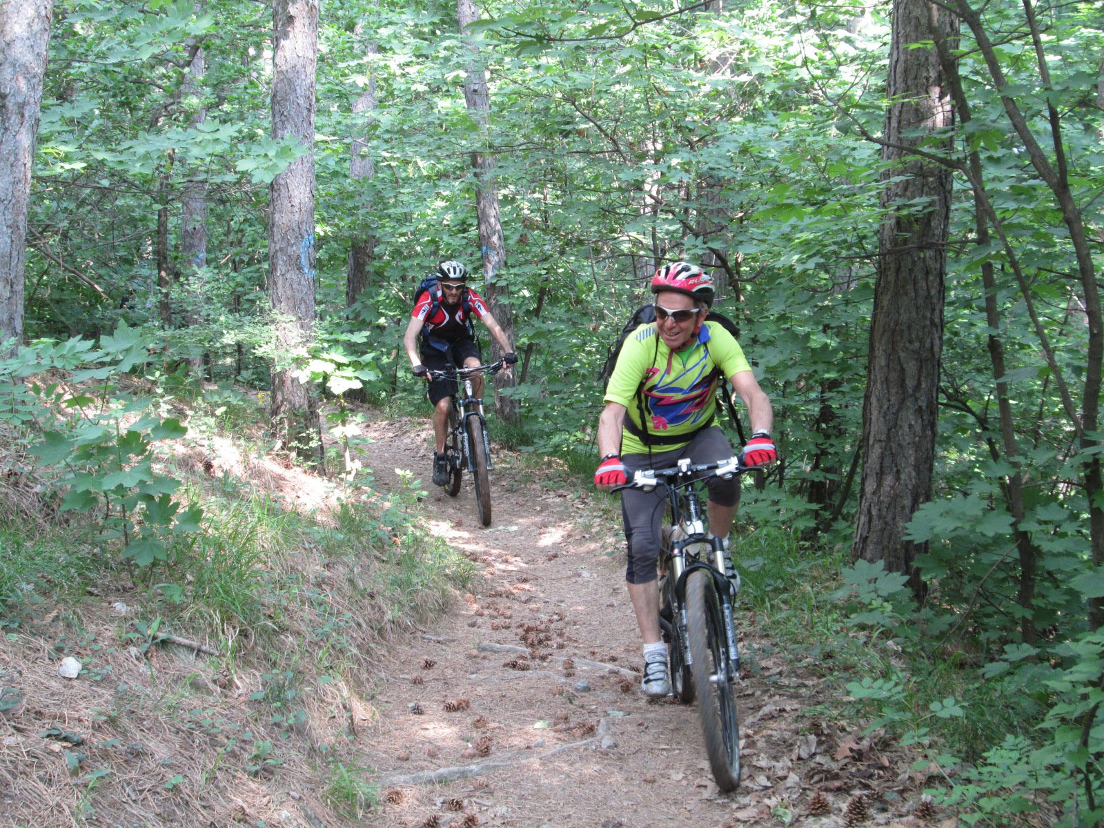 Partenza da Sangano alle 10,15, dopo il primo tratto sulle stradine interne che collegano Sangano a Piossasco abbiamo optato per salire sul piacevole sentiero che parte da Regione Galli. Dopo un paio di dure rampe iniziali su sterrato molto sconnesso, si svolta a sinistra su sentiero e con un lunghissimo traverso ciclabile praticamente al 100% e con alcuni saliscendi si arriva a San Valeriano. Da qui saliti fino in cima al San Giorgio su sterrata ottimamente risistemata di recente, con fondo compatto e poco sconnesso. Dopo una bella pausa pranzo, siamo tornati al Colle della Serva e da qui abbiamo preso il sentiero per il Colle di Pre, in buona parte ciclabile salvo alcuni tratti da fare a piedi (5-10 minuti in totale). Da qui abbiamo proseguito fino al Pietraborga, salendo a piedi fino alla cima. Al ritorno, abbiamo individuato un sentierino sulla sinistra con un cartello in legno che indicava “Prese di Sangano”, che abbiamo ovviamente preso…il sentiero è breve ma molto divertente e ciclabile al 100%, e termina proprio alle Prese…Da qui breve tratto di discesa su sterrato fino al bivio col sentiero dei cinghiali, dal quale siamo scesi. Il sentiero è a mio avviso in buone condizioni e molto divertente, con fondo quasi sempre di terra e compatto; alterna tratti più veloci e scorrevoli ad altri (normalmente abbastanza brevi) più ripidi e impegnativi, con pietre, gradoni e radici. Solo nella parte finale ci sono alcuni tratti con pietre smosse e fondo scavato. Si tratta comunque di una discesa non banale (un BC ci sta tutto)…a mio avviso la ciclabilità è dell’80-90%, a seconda delle capacità.