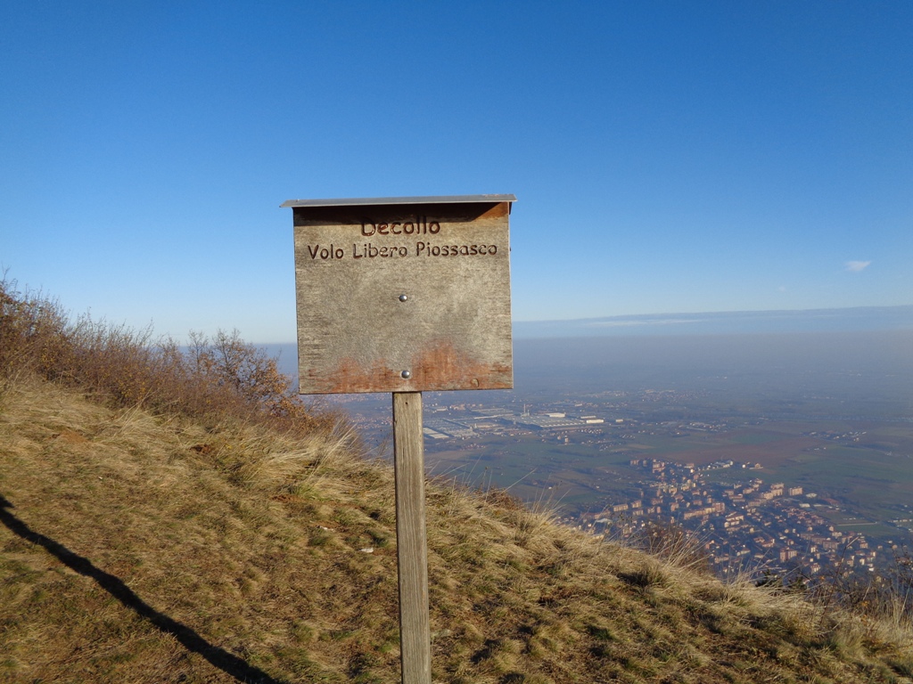 Evitando la strada a SX (Sud-Ovest) che riporta in breve a Piossasco, si prende la sterrata verso Nord, sul versante della Val Sangone che con diversi saliscendi attraversa la borgata delle Prese di Piossasco. Da qui e sin dopo le Prese di Sangano, il fondo della strada è di asfalto ruvido e con pietrisco. Giunti nei pressi delle Prese di Sangano si svolta decisamente a SX (Sud) giungendo in breve ad un colletto .