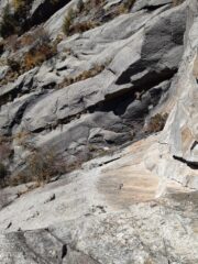 Avvicinamento un po’ ostico: dal muretto della vecchia strada per Predarossa andar su dritti per dritti per i sassoni e poi seguire la traccia che va leggermente a sx e poi sale ripida verso le pareti. Occhio a prendere quella più visibile che va leggermente verso destra. Purtroppo entrambe segnalate allo stesso modo (ometti e bolli blu). Punto fondamentale: una volta che la traccia procede di traverso verso destra su falso piano, occhio a una traccia (ometto) che sale su ripida verso le pareti — prender quella!