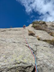 Via entusiasmante, incontrate nell’ordine: 2 vipere sul primo tiiro (occhio alle fessure), un pipistrello nell’ultima fessura dell’ultimo tiro, a parte la componente zoologica vivace, roccia da urlo, tiro chiave ben proteggibile (portarsi una decina almeno di rinvii ch il tiro è lungo!), di relazioni online ce ne sono a bizzeffe!