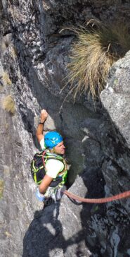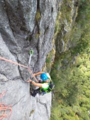 - 7° tiro: Per muri a tacche tenendo sempre la destra per poi tornare a sinistra per sostare. 6a+; 30m.