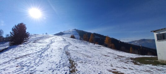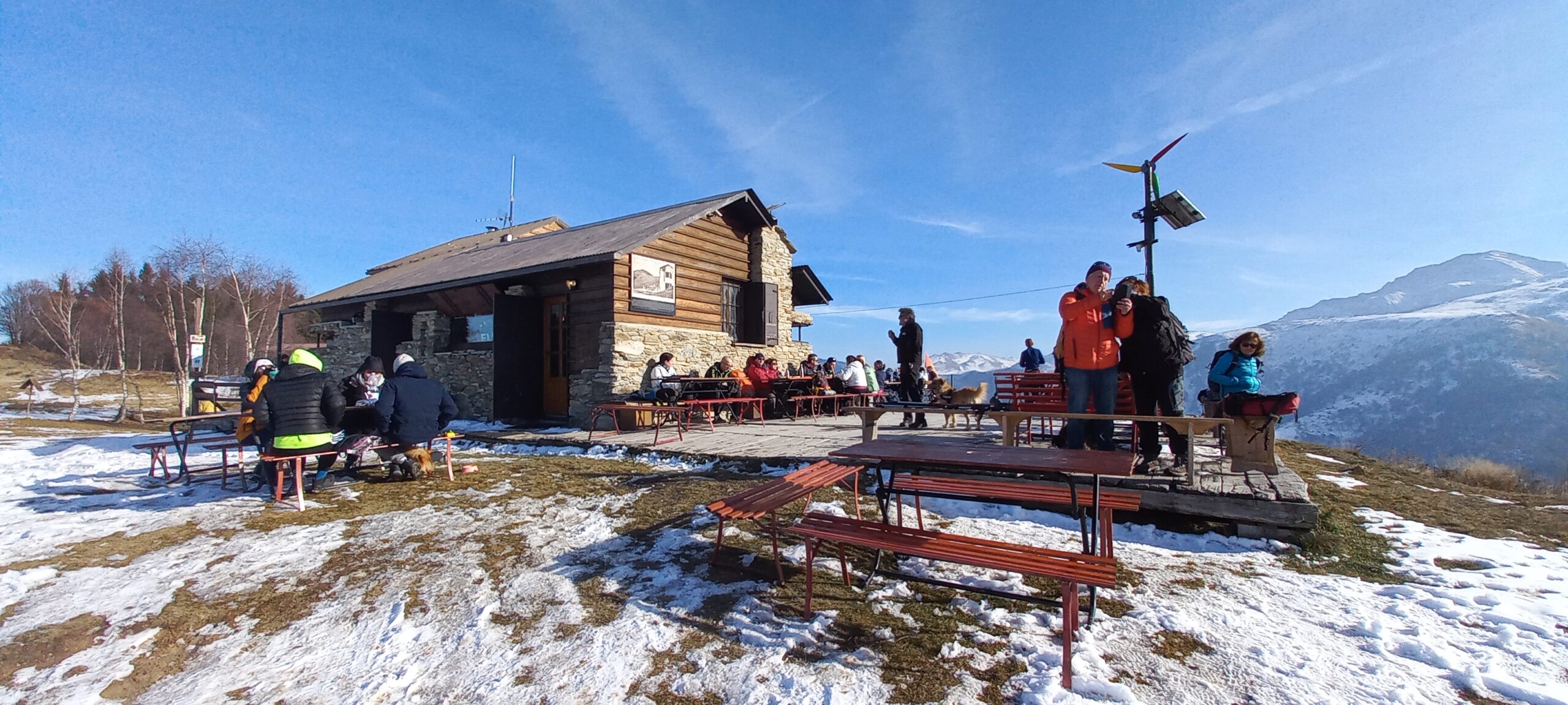 Piacevole escursione su strada sterrata e poi su traccia battuta nella poca neve (presenti circa 5 cm oltre i 1500 m). Dalla vetta panorama a giro d’orizzonte. Al ritorno sosta all’ottima Baita Elica, aperta nei fine settimana. Tanta gente sul percorso.