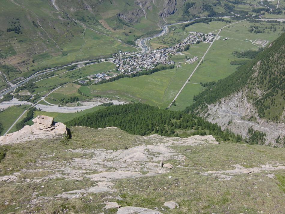 Abbandonare il sentiero ed iniziare a salire a destra su prati e macchie di rododendri pervenendo ad una dorsale arrotondata; sfruttando il percorso più comodo del terreno si sale lungo l’erbosa dorsale a risalti pervenendo ad un ripiano (Plate Ste Anne) dal quale è ben visibile una pronunciata guglia che è la vetta della Pointe du Soliet e procedere in quella direzione.