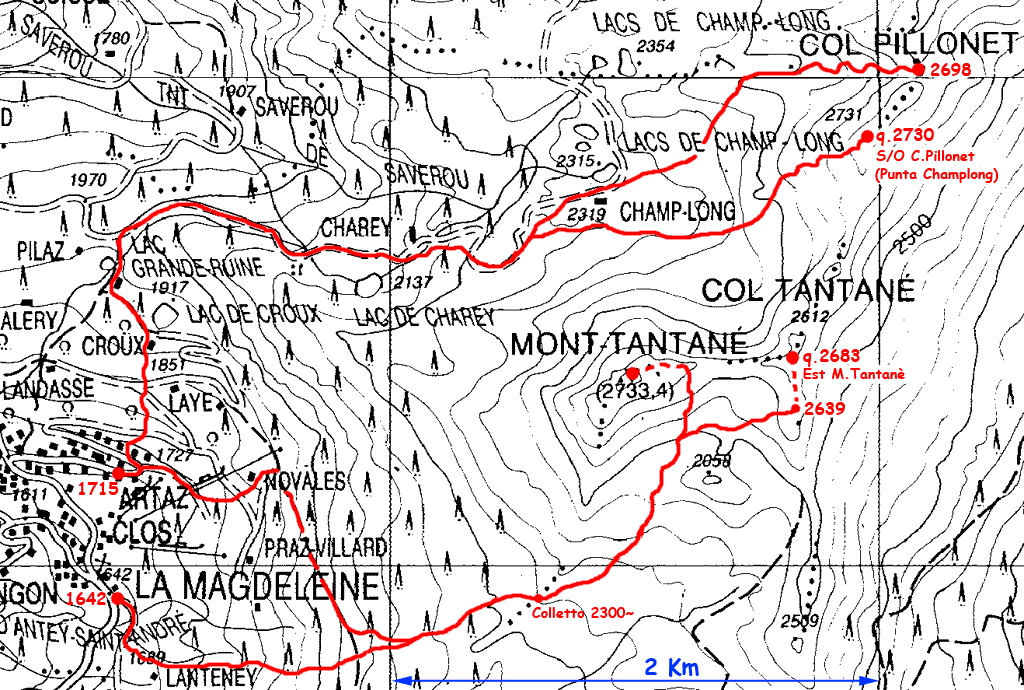 Pillonet (Col) quota 2731 m a SO o Punta Champlong da Artaz