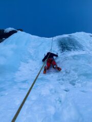 avvicinamento con sci e poi salita. nessun problema, ghiaccio stupendo. discesa con 3 calate