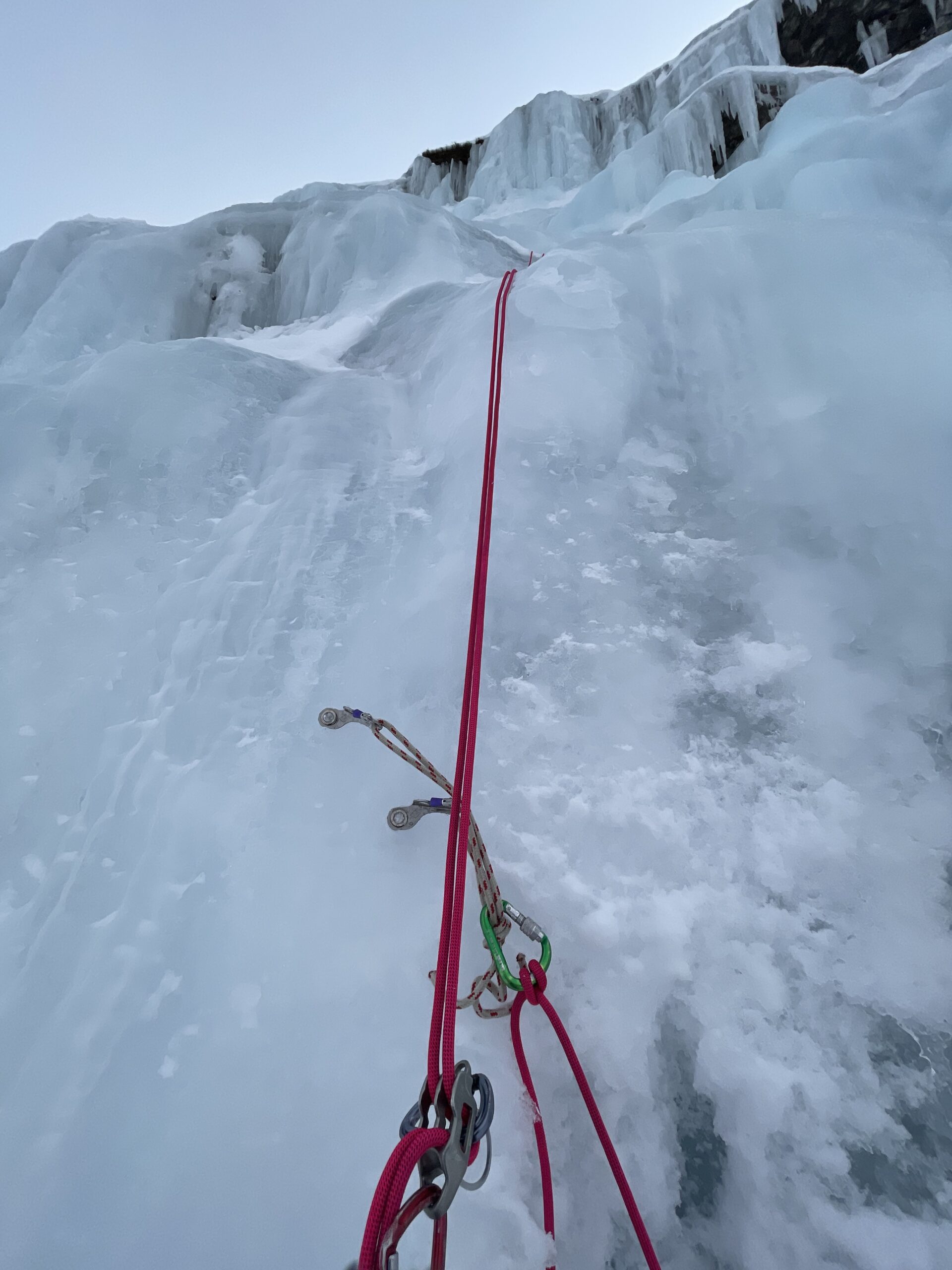 La mia prima arrampicata di una cascata in solitaria autoassicurata.