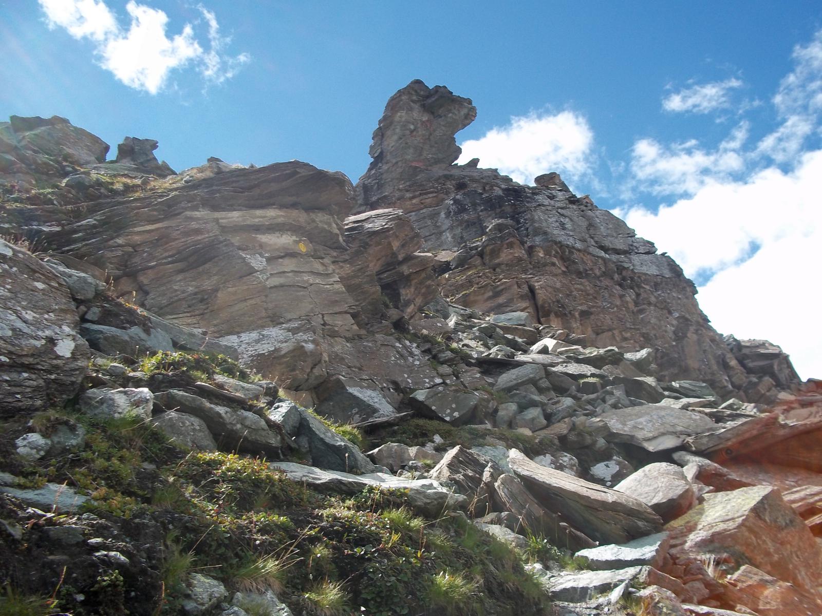 Per la salita al breve torrione della cima vera e propria, esposto, è consigliabile avere uno spezzone di corda (passi di II).