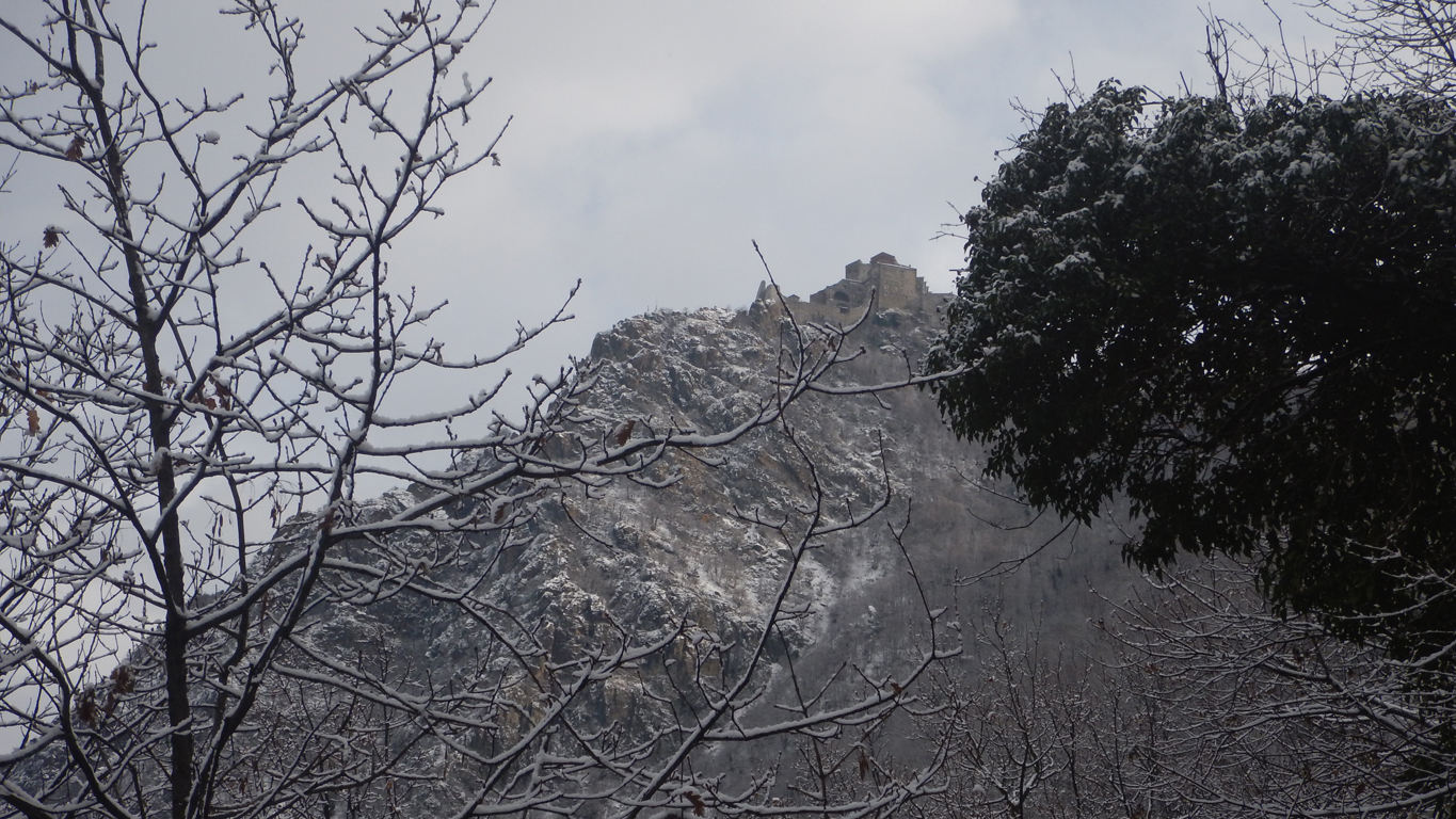 L’itinerario da noi percorso è una variante di quanto riportato in descrizione che permette di fare un giro ad anello più corto senza raggiungere il Monte Pirchiriano e le borgate di Chiusa di San Michele. Siamo partiti dal sentiero accanto la Chiesa di San Pietro Apostolo seguendo per un tratto il sentiero 503. Poi a circa 650 metri di quota abbiamo preso il sentiero a sinistra che con un taglio sul versante permette di raggiungere un primo sentiero per Borgata Bennale e poi il secondo sentiero n. 504 che abbiamo seguito fino alla Roccia dell’Aquila. Dopo un veloce pranzo al sacco in piedi siamo ridiscesi compiendo un anello per raggiungere la fontana Ma Pertus e poi ritornati a Chiusa di San Michele come da descrizione. Approfittato della fine della nevicata in mattinata per compiere questo anello in mezzo alla neve. Occorre prestare attenzione per alcuni traversi oggi scivolosi causa neve e foglie soprattutto in presenza di salti di roccia o terreno ripido sottostante.