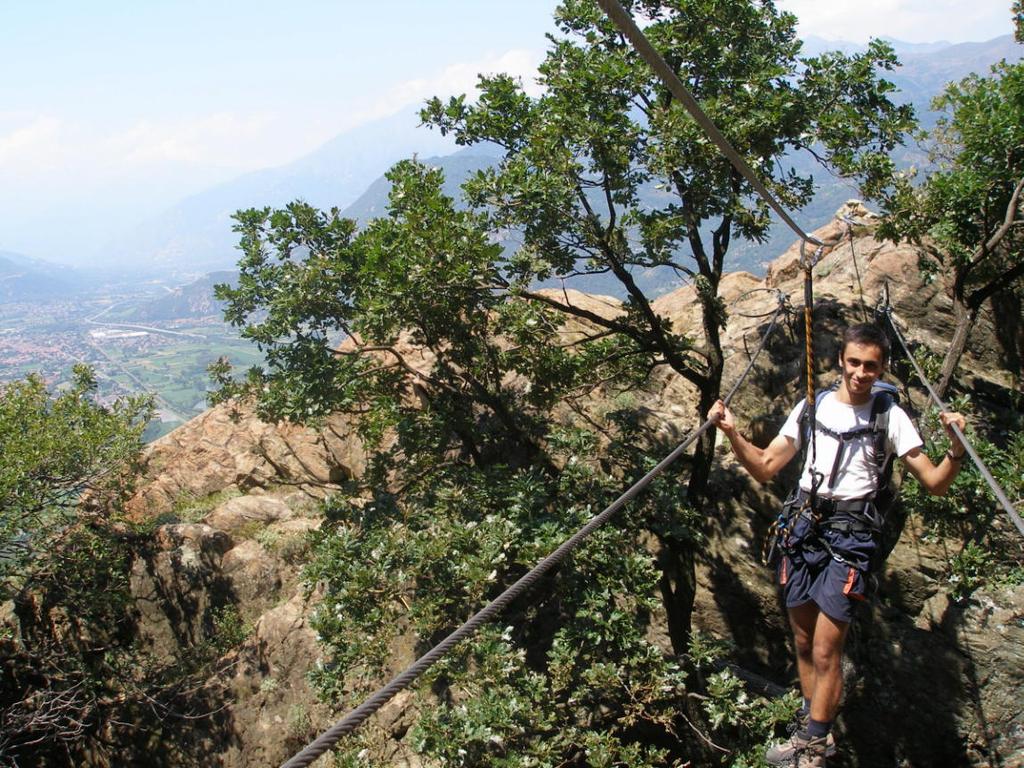 l’ho fatta con stefano che faceva per la prima volta una ferrata, faceva un caldo assurdo ma si saliva bene grazie alla leggera brezza della val di susa, più in alto hanno fatto un piccolo ponte tibetano di circa 15 metri sempre evitabile.
