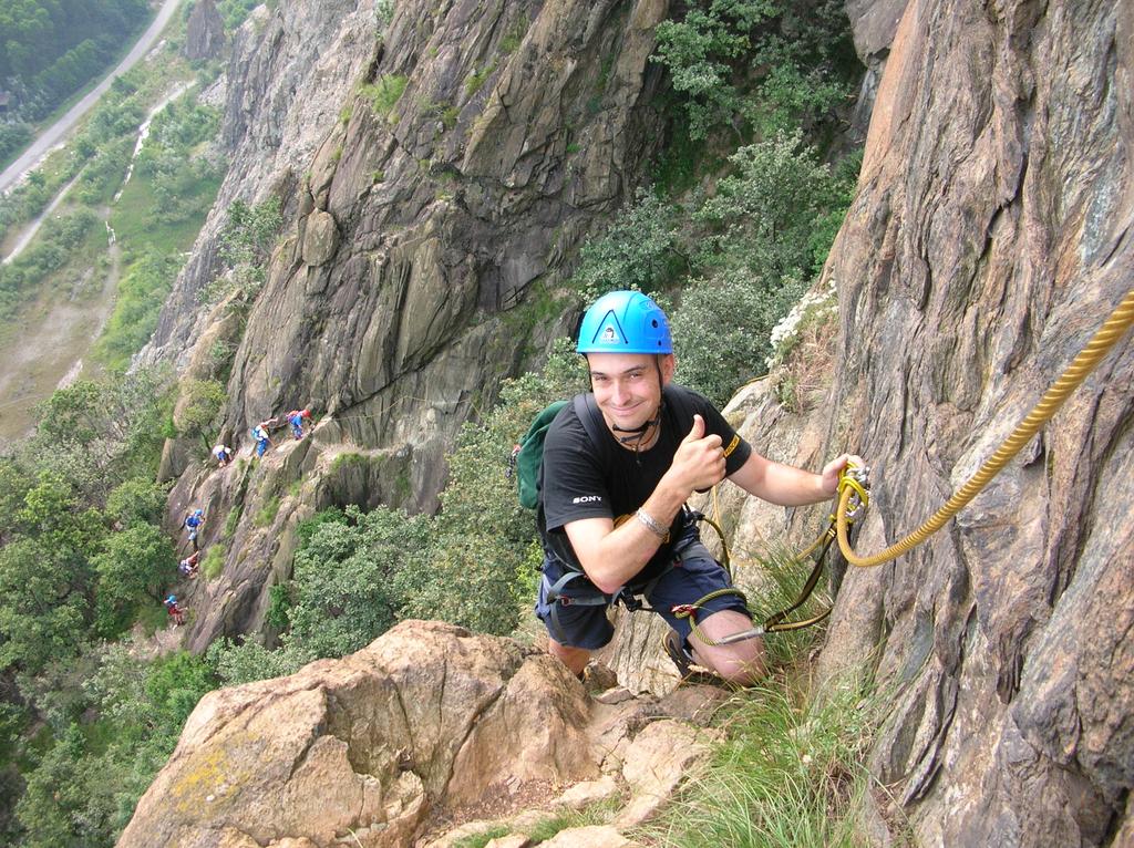 finalmente la ferrata della sacra!! ebbene sì dopo diversi anni ho salito in compagnia dell’amico ritrovato gianluca (oggi x lui la prima esperienza di questo tipo!) questa ferrata davvero molto lunga e poi oggi particolarmente afosa e calda(2lt di acqua nn sono bastati, provvidenziale il bar in cima sulla piazzetta!) ma cmq graziati dai diversi temporali che cigiravano sopra. Davvero carina con dei tratti in piena placca molto belli, oggi tra la’ltro frequentata da diverse famigliole e gruppi di amici, peccato solo x i tratti camminabili un po’ lunghi tra uno spezzone e l’altro. sicuramente da riprovare in periodi un po’ + freschi….