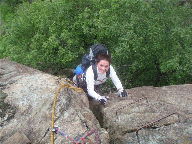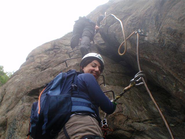 bella salita anche e il tempo è stato piuttosto umido rendendo la roccia saponosa nel secondo tratto; salita divertente indicata per chi vuole provare l’ebrezza della prima ferrata, anche se un po’ lunga