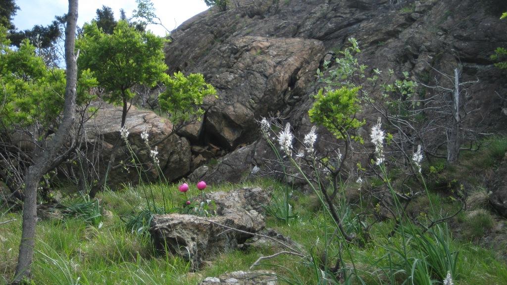 Simone non c’era mai stato e così dopo una decina d’anni sono tornato alla Sacra. La sorpresa sono stati gli asfodeli presenti su ogni terrazzino e un camoscio sul sentiero. Per il resto ferrata facile ma sempre lunga anche se rinfrescati da una venticello quasi costante.