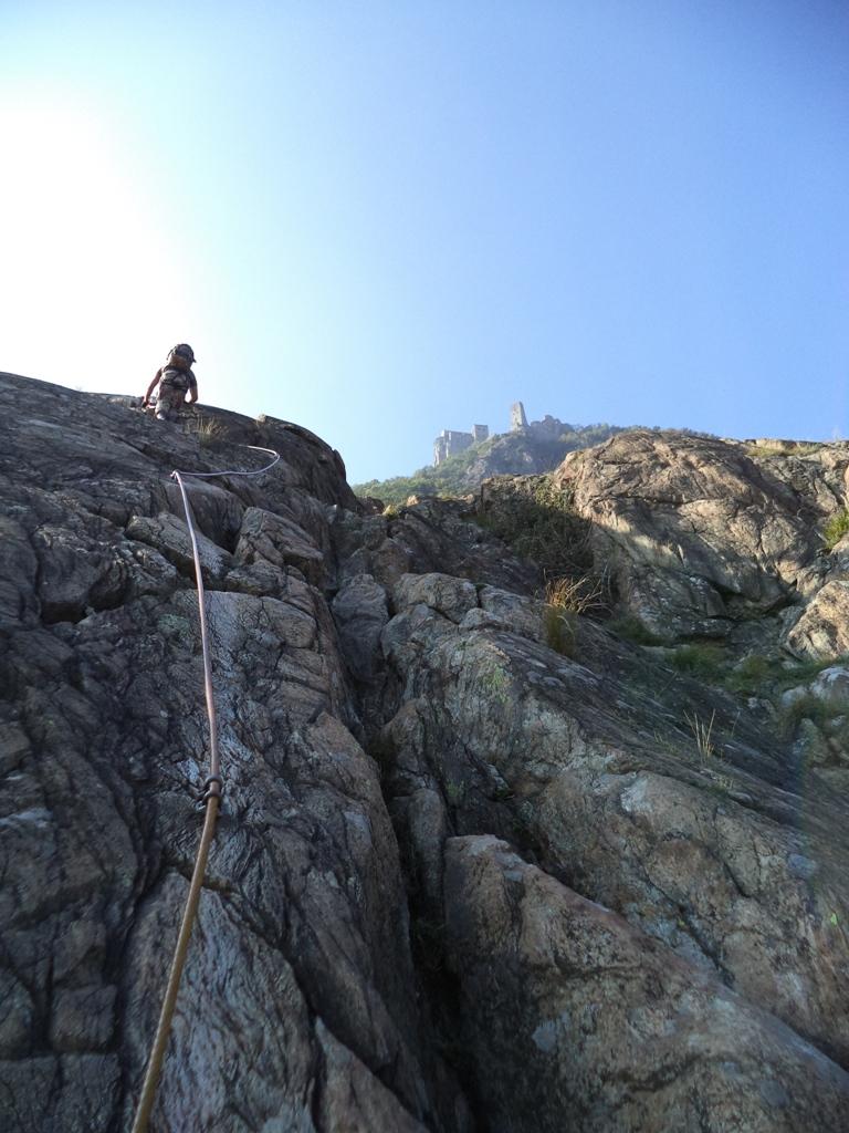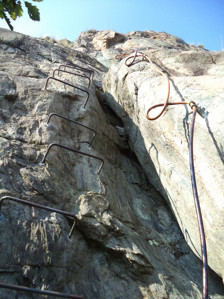 Salita divertente, facile e abbastanza lunga. Tutto il percorso è ottimamente segnato e l’attrezzatura in loco è impeccabile; i passaggi atletici e un po’ più verticali si contano sulle dita di una mano. Roccia sempre ben compatta che permette di arrampicare lungo quasi tutta la ferrata, solo lisciata nei passaggi un po’ più obbligati. Attenzione solo al blocco che muove alla base del camino che si incontra verso la fine del secondo tratto di ferrata, prima del ponte tibetano. Pensavo di non trovare nessuno invece mi è sembrato di partecipare a giochi senza frontiere: davanti a me erano appena partiti ben 60 soldati dell’esercito in addestramento, quasi tutti alla loro prima esperienza verticale; per fortuna mi hanno gentilmente lasciato passare (anche se erano talmente tanti che gli ultimi li ho sorpassatti dopo il ponte tibetano). Il tempo indicato dal sito di altox (5-6h!!) mi sembra veramente troppo dilatato.