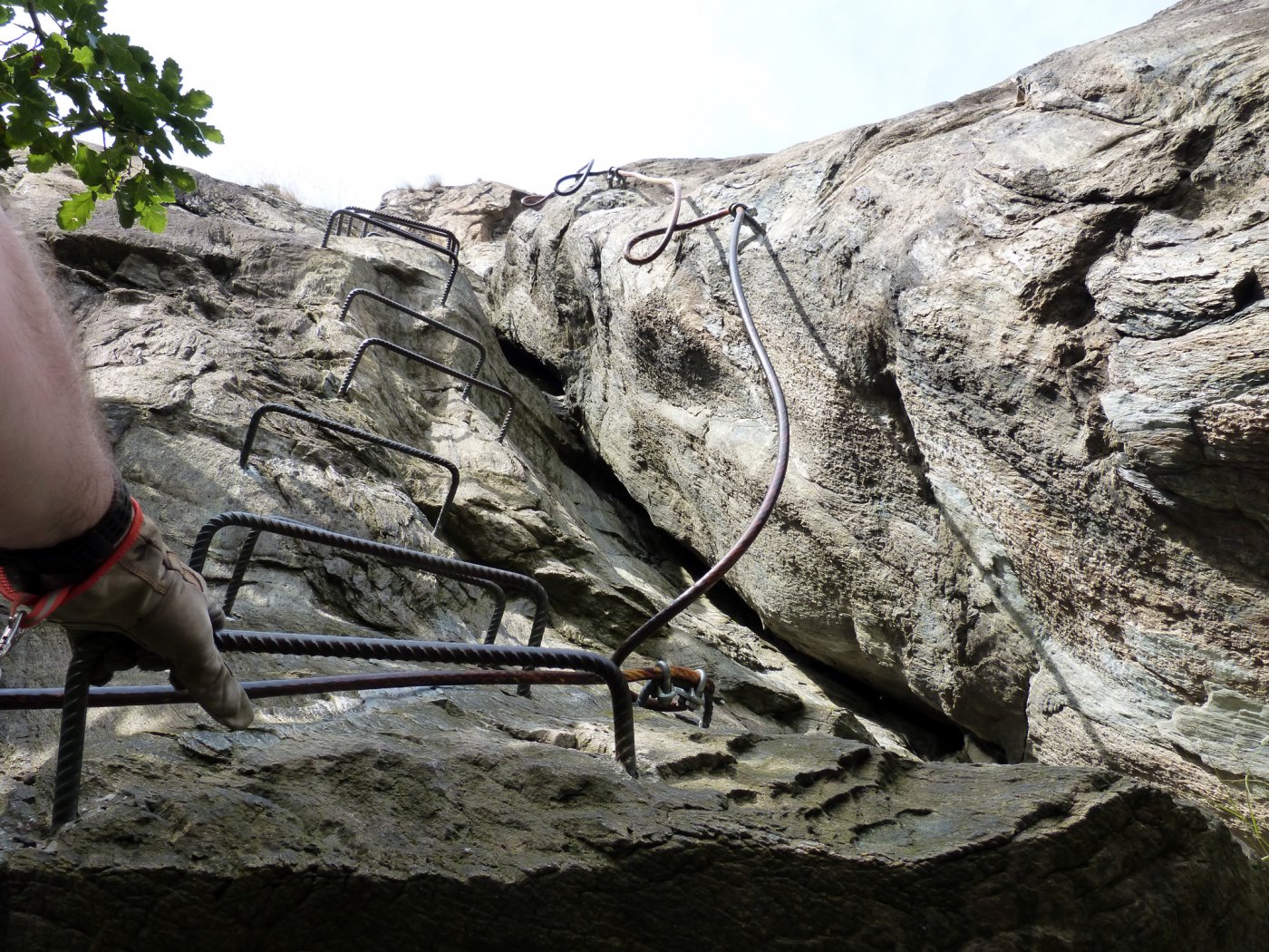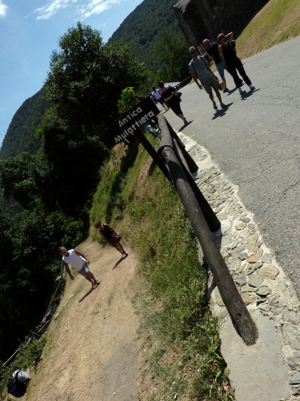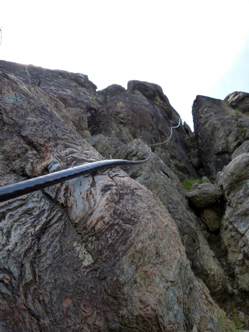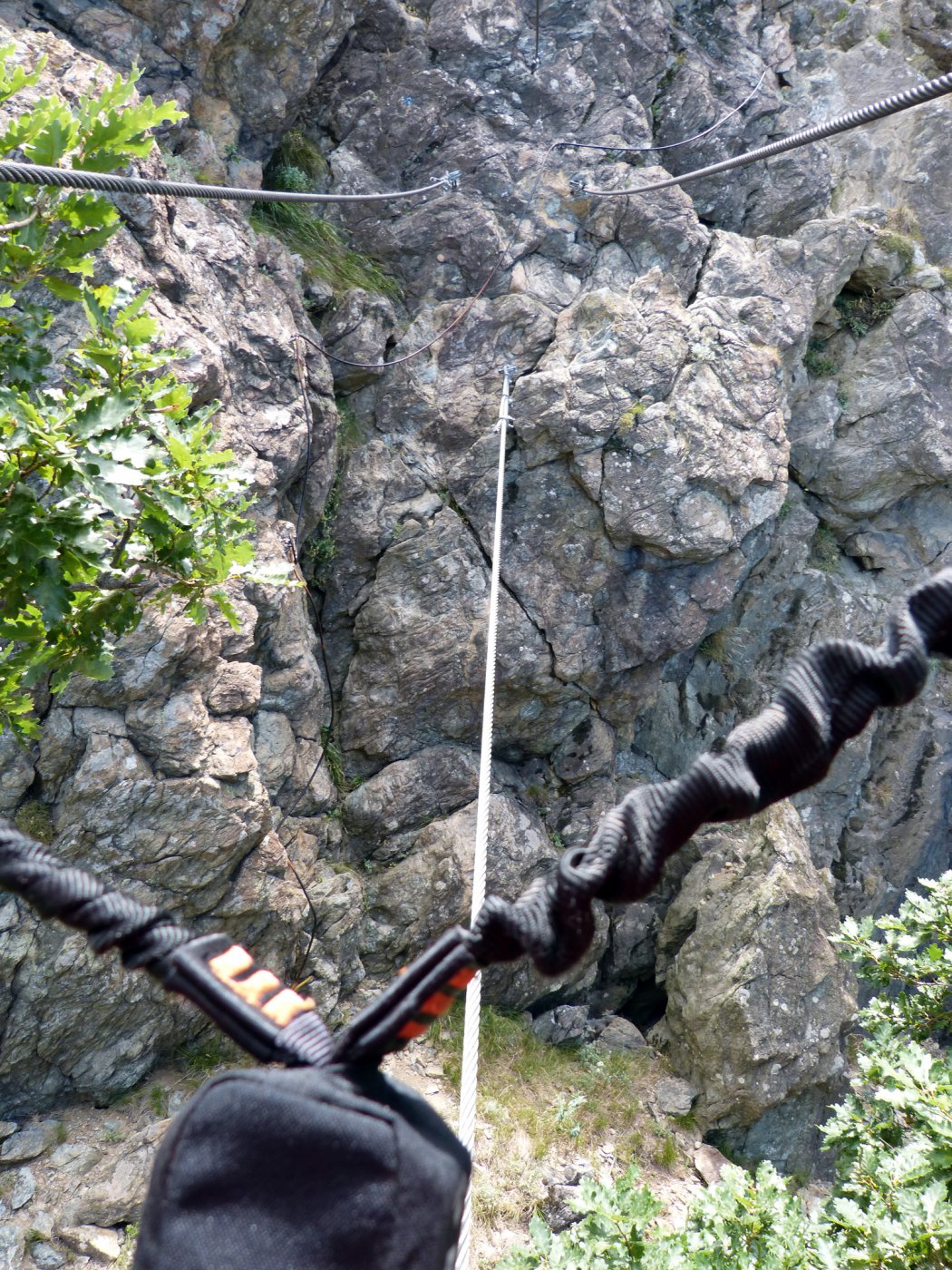 Salita in solitaria presa comodamente in circa 3h; La ferrata divisa in 3 parti diciamo con un paio di vie di fuga, che permettono a chi non se la sente di uscire; io me la sono sparata tutta, ma alla fine della scaliate non c’é alcun cartello che indica il termine della ferrata, tantomento la direzione da prendere per raggiungere la Sacra (io ho girato a SX sul sentiero che mi sembrava più marcato e dopo un 100mt ho trovato una bella porta chiusa), tornato indietro ho preso una passerella fatta con corrimano di tubi verdi che portava ad un’altra via chiusa; non sapendo dove andare ho preso un sentierino che portava poco più in giù, dopo un bel 200mt si arriva ad un bivio preso SX, breve salita che porta al parcheggio della Sacra, dove si sbuca improvvisamente fuori dal bosco con il 90% della gente seduta comoda con il gelato in mano che ti guarda stralunata «…e questo da dove arriva?»…