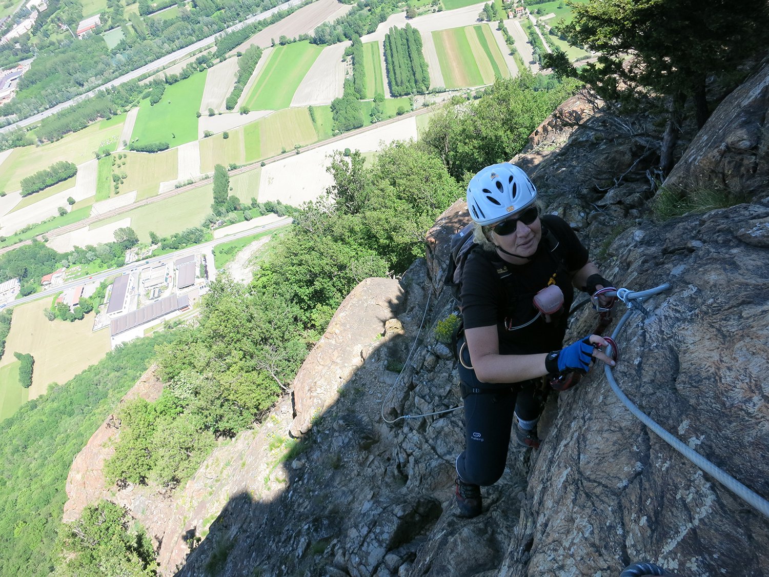 Ferrata completamente rimessa a nuovo, il nuovo ponte tibetano la valorizza ulteriormente.Complimenti a tutti coloro che ci hanno messo impegno per questa nuova realizzazione.La apprezzavo già prima figuriamoci adesso.Trovato gli appoggi per i piedi molto levigati ma sicuramente è dovuto al grande afflusso di gente di questi giorni.Il ponte tibetano l’ho trovato abbastanza ballerino ma visto la sua lunghezza ( 80 metri?) sarebbe strano non lo fosse stato. Giornata iniziata con vento “patagonico” per intensità ma non per temperatura per cui è stato anche piacevole visto che le temperature purtroppo cominciano a salire.Arrivati a metà percorso ha praticamente cessato la sua azione e abbiamo così cominciato a patire il caldo.