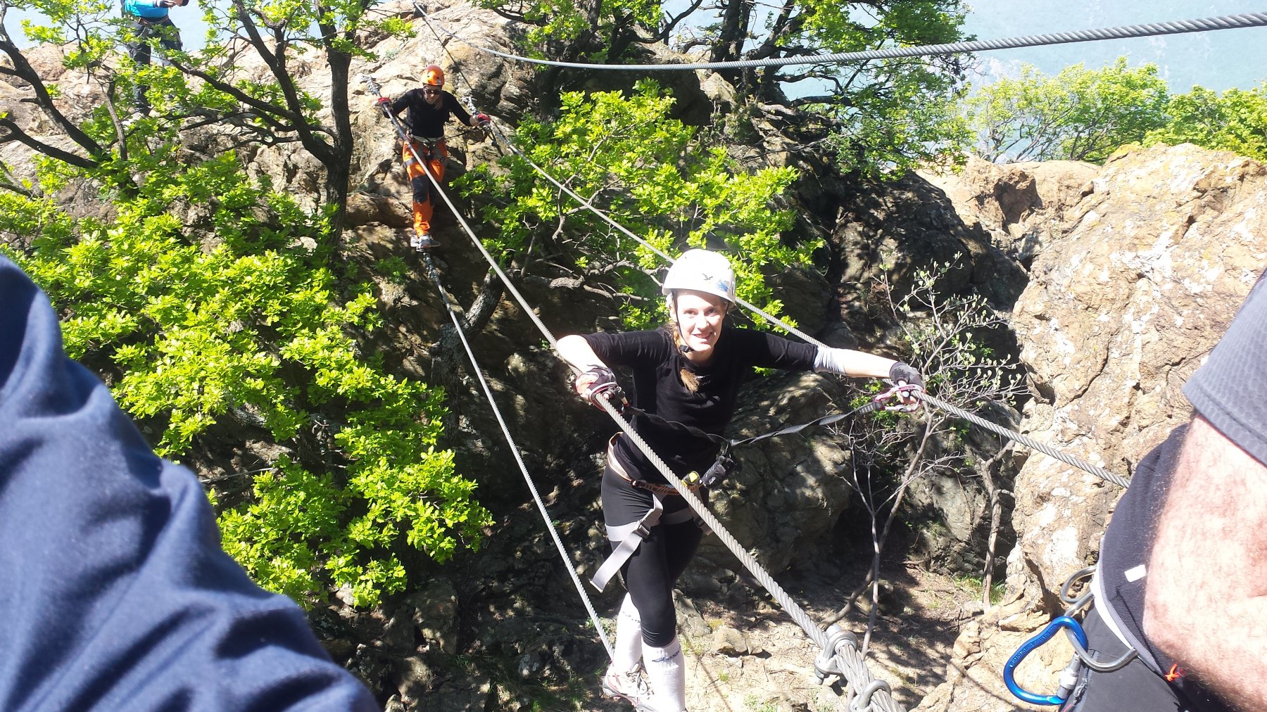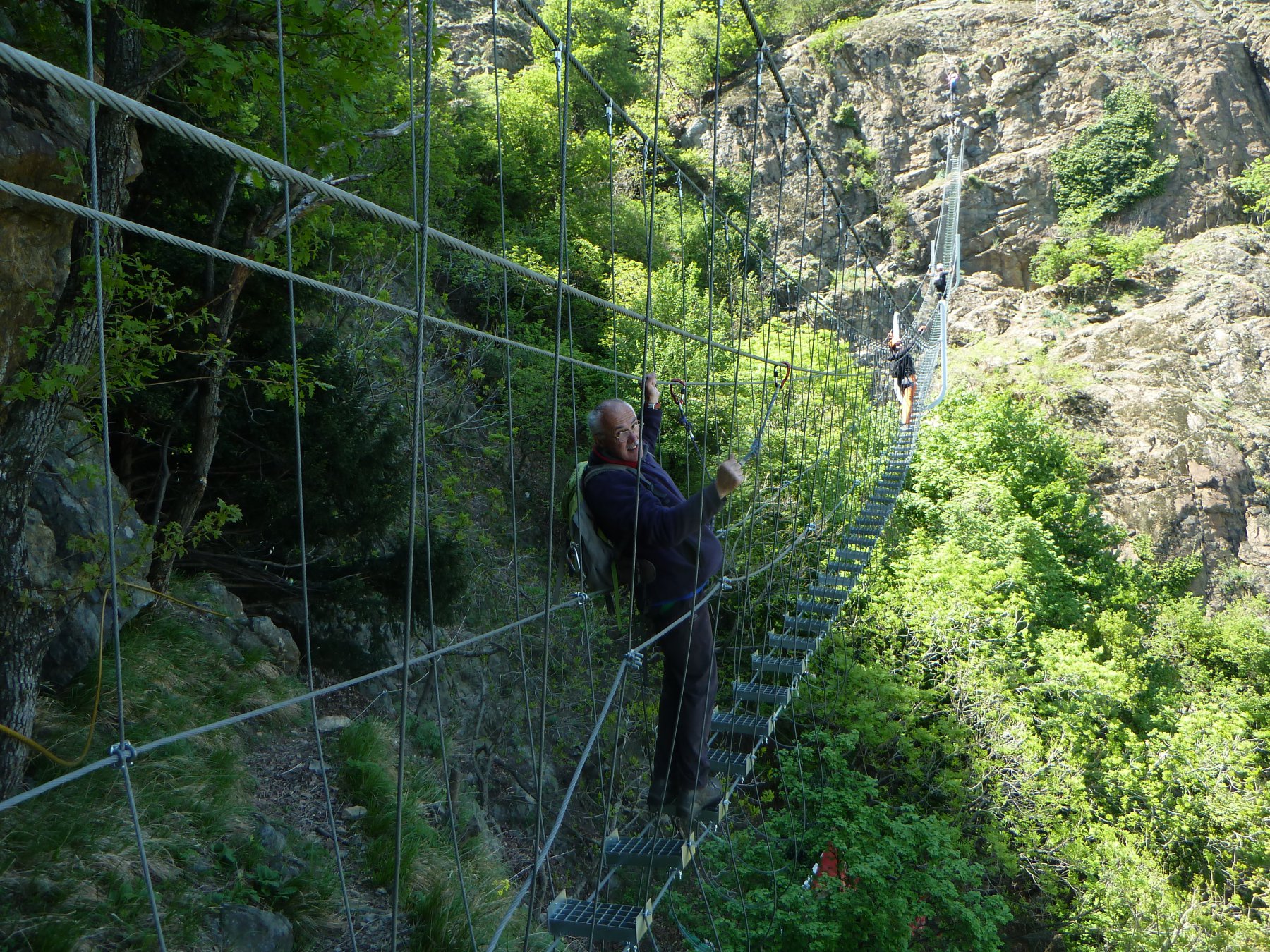 Il ponte è molto suggestivo ma lo ritengo “ballerino” soprattutto se si è in 3-4 persone a percorrerlo contemporaneamente (ed è facile che succeda perchè, dopo la rivisitazione dello scorso anno, la frequentazione è molto più alta) ed i cavi di aggancio sono alti (credo che i bambini possano avere dei problemi se non si hanno dei rinvii).