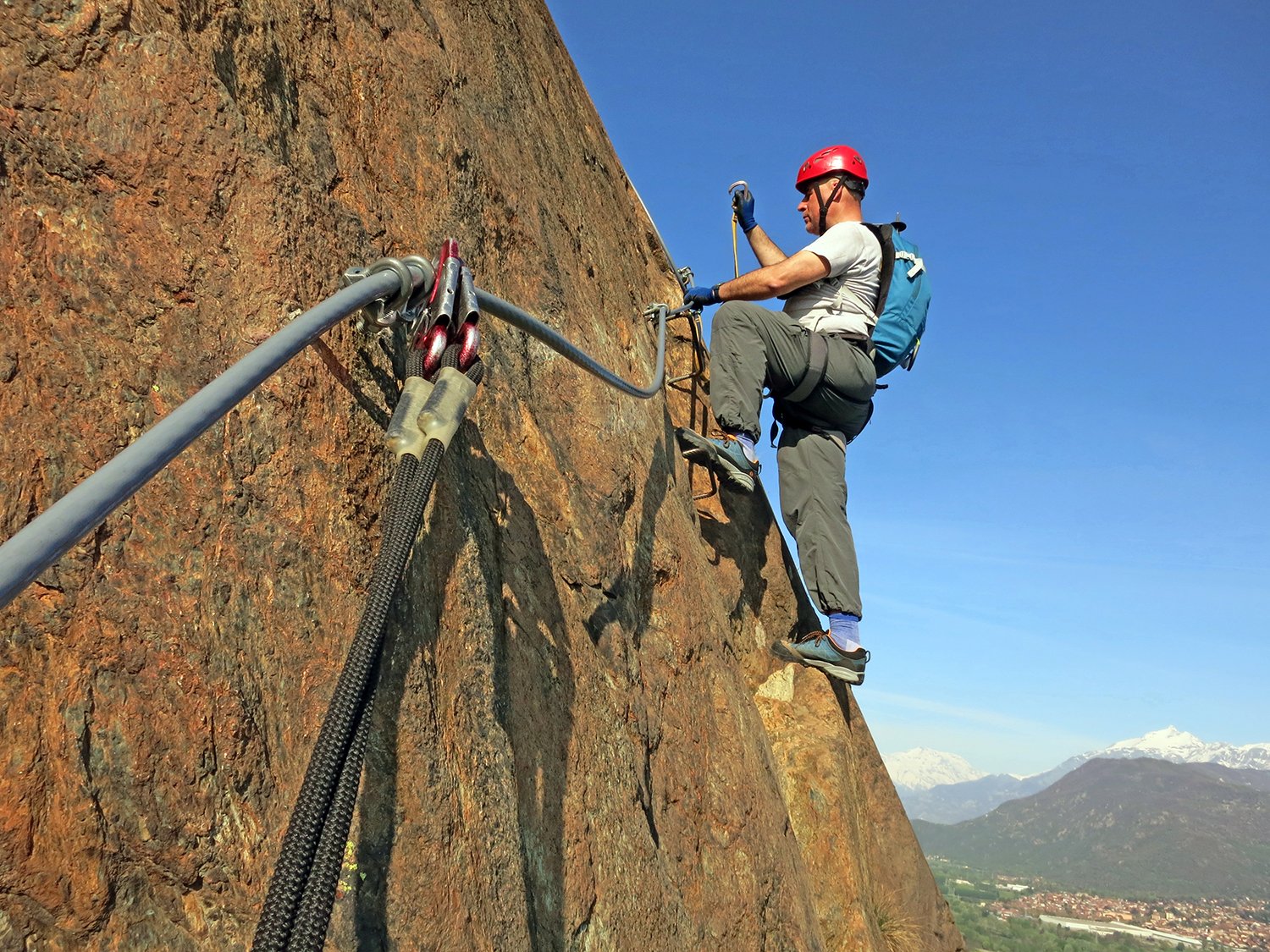 Confermo quanto detto dai salitori della ferrata che mi hanno preceduto, la roccia in alcuni punti sembra marmo levigato quindi occorre prestare un minimo di attenzione in più.Per il resto la ferrata è ok.Partiti presto, ma non prestissimo, ci siamo risparmiati una bella paccata di calore. Lungo la prima parte della salita il sole è radente per cui il calore delle rocce è minimo, dopo il lungo ponte tibetano si entra nella zona d’ombra e questo è stato decisamente molto piacevole.