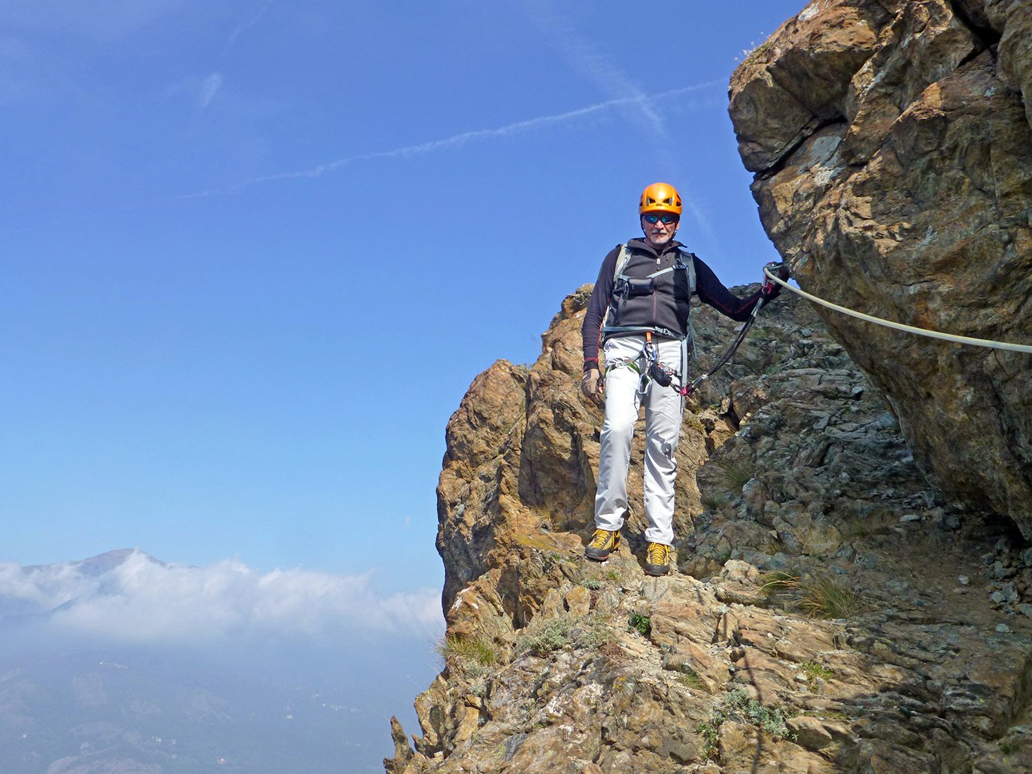 Ferrata in ordine su tutto il percorso anche se qualche tratto comincia ad essere veramente “marmorizzato” dalla frequenza dei passaggi.