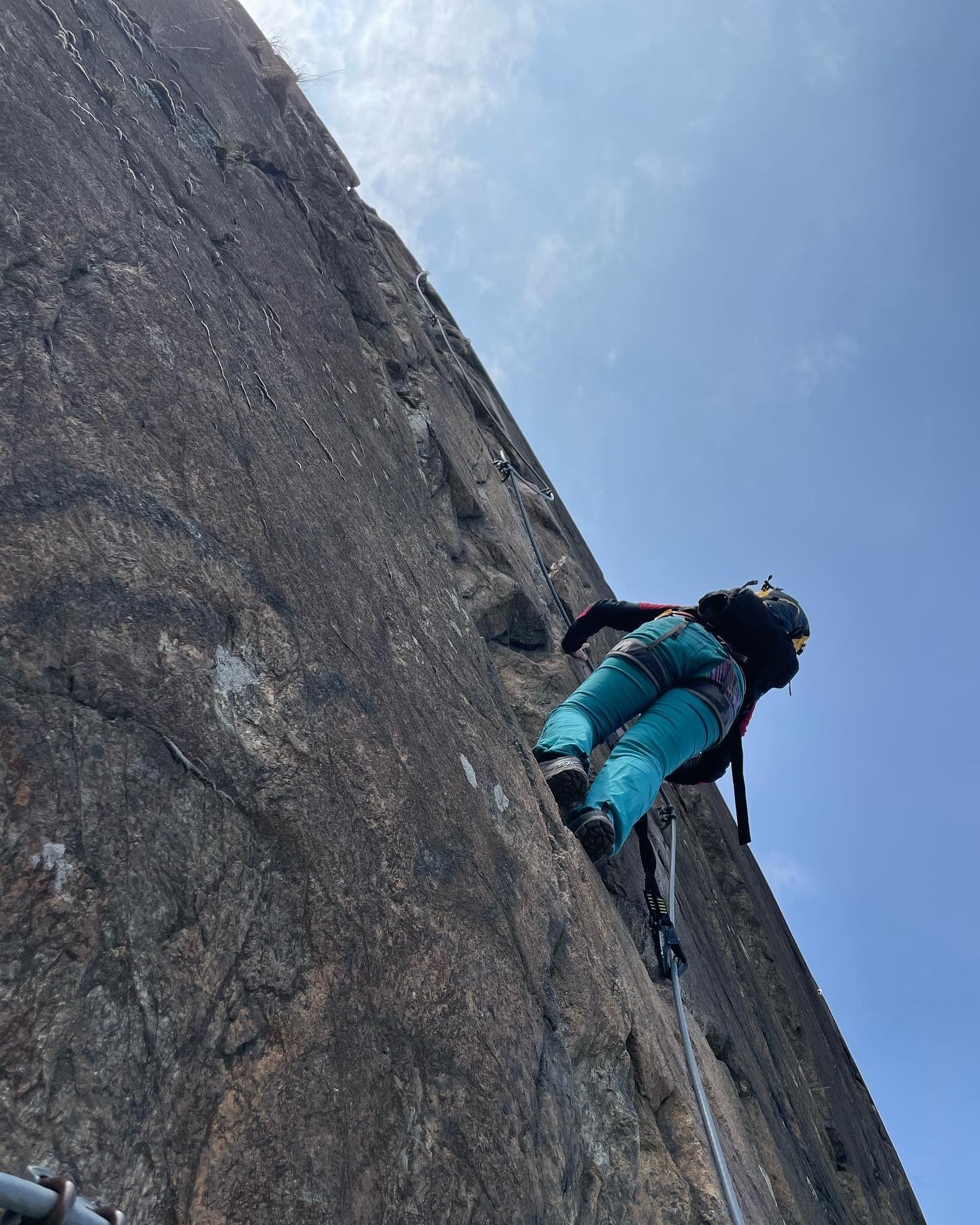Via ferrata abbastanza lunga circa 3 ore, se si scala senza usare troppo il cavo risulta impegnativa soprattutto perchè le ripetizioni hanno unto un sacco la roccia. comunque richiede un buon allenamento fisico. consiglio scarpe idonee o scarponi o scarpe di avvicinamento.