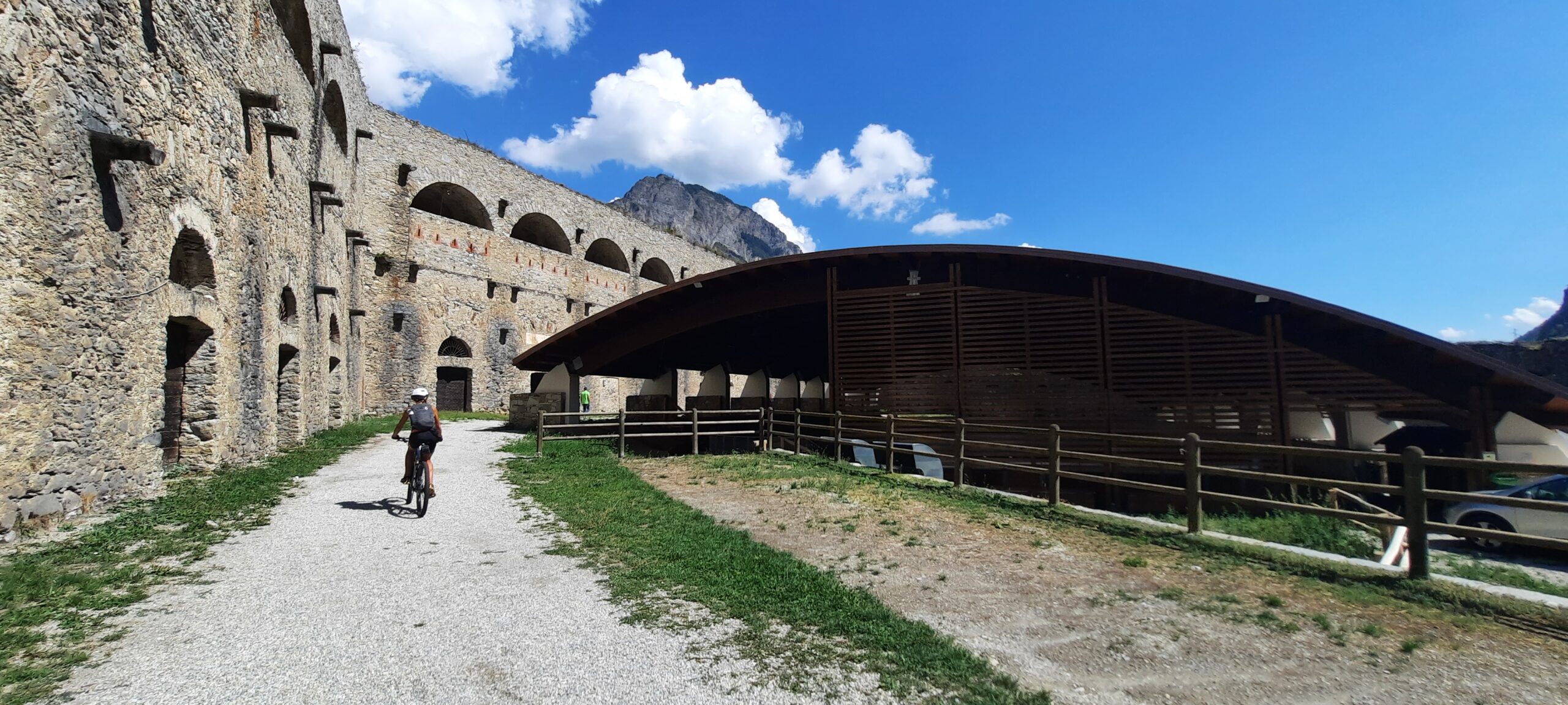da vinadio ridiscendere la valle direzione cuneo sulla strada militare(strada a destra in discesa tra la caserma dei carabinieri e la trattoria “la grotta”),se proprio non amate l’asfalto giunti al campo sportivo vi dirigete sulla mulattiera che costeggia il fiume e sempre direzione fondo valle raggiungerete il ponte in ferro.oltrepassato il ponte deviate a dx e sull’unica strada sterrata che inizia a salire si inizia l’ascesa al forte.dopo circa 1 ora di pedalata su ottimo fondo e oltrepassata una fontana si raggiunge su tornante a sinistra un bivio a destra su fondo erboso.tralasciata quindi la strada principale e deviato a destra su breve discesa si raggiunge il forte,non oltrepassatelo,aggirandolo sulla destra troverete l’inizio di un sentiero non segnalato che portandovi sulle basi delle mura del forte inizia la discesa verso pratolungo.sentiero sempre molto impegnativo e molto tecnico(non scoraggiatevi della prima parte,sotto è più bello).giunti in prossimità del rio freddo e di un traliccio dell’alta tensione tenete la destra e in un attimo arriverete sull’asfalto di pratolungo.