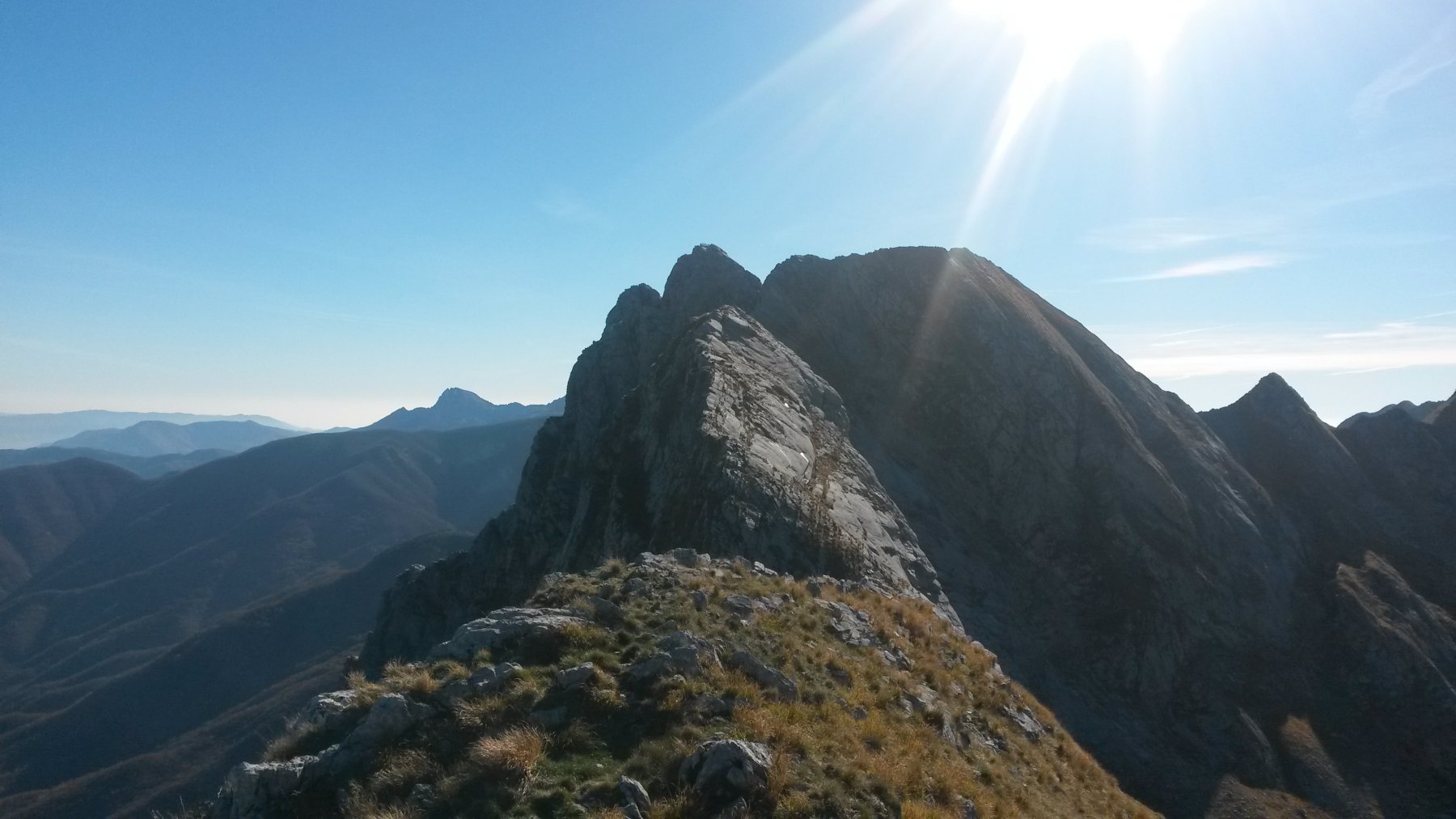 Ci si porta infine alla base della parete sommitale, alta non più di 200 m (3h da Gorfigliano). Il canale di salita è il secondo da destra, guardando la parete, e attacca un po’ a sinistra della verticale della vetta più alta.