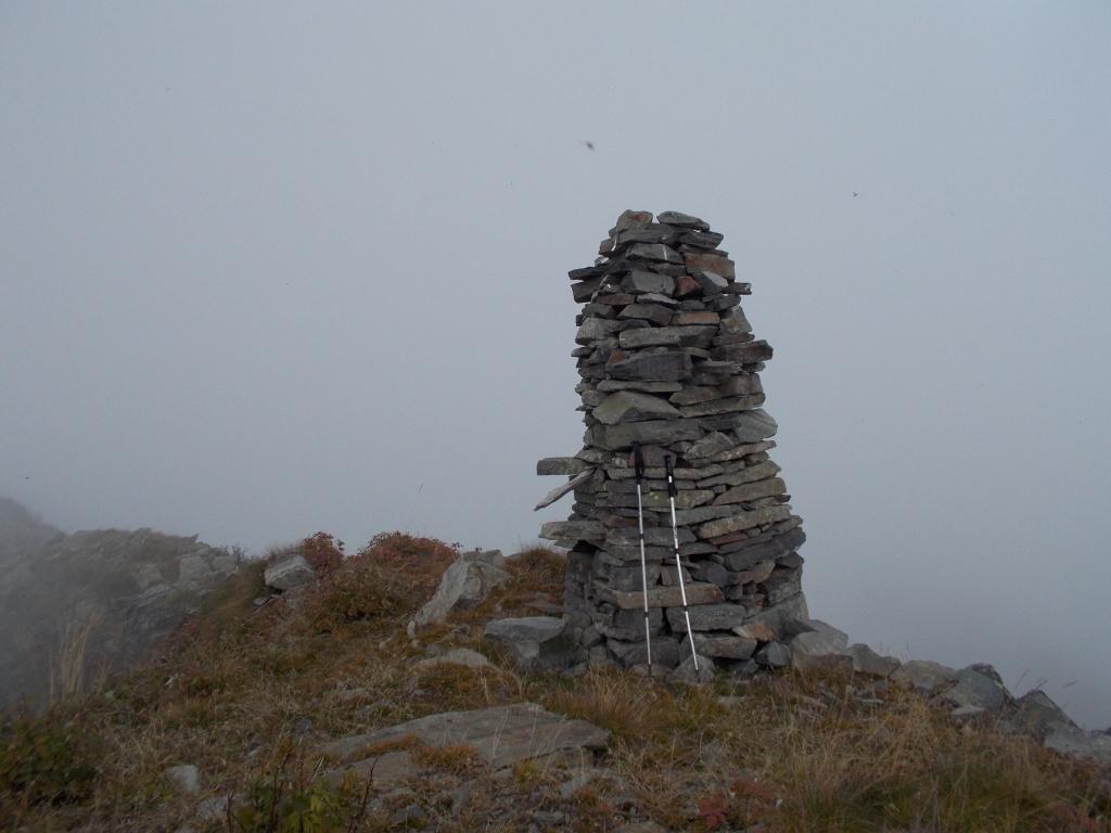 Dalla sella, a sx, si segue, senza difficoltà alcuna, l’erta dorsale che porta sulla cima tondeggiante, caratterizzata dalla presenza di un grande ometto.