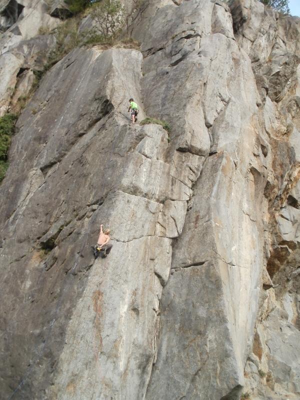 - L7-6b+ Muro verticale , ripido leggermente strapiombante. Le braccia sono molte sollecitate. Grado non rubato.