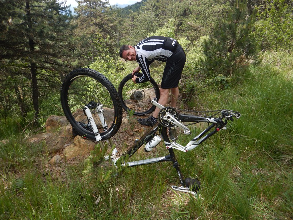 Con Sergio che mi ha dato ottimi suggerimenti sia per la salita che per la discesa. Per la serie “Le Comiche” il mio socio ha bucato sull’ultima discesa (per fortuna aveva camera d’aria di ricambio) mentre io ho bucato prendendo veloce l’ultimo scolo d’acqua appena giunti al parcheggio di Pera Pluc con la differenza che non avevo dietro niente… Sfruttato “servizio taxi” con Sergio per il ritorno a casa.