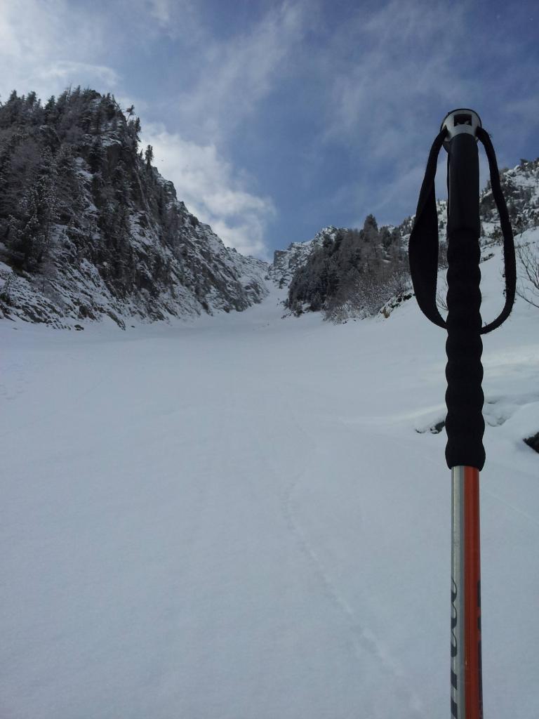 Il Piure non delude mai! Il meteo piuttosto incerto e le temperature elevate a sud ci hanno convinto che il canale oggi poteva essere ok. Sci ai piedi dall’auto saliamo agevolmente per il sentiero del bosco ancora innevato,breve tratto dopo la frazione con neve sfudusa poi già sul conoide e per tutto il canale 20 cm di neve fresca caduta nella notte su fondo compatto. Scendiamo dal canale di destra dove i primi 20 metri ci impegnano a fondo a causa di una placca dura come il vetro bonificata da Alf e Nadia scesi poco prima di noi (bravi!!!). Fino alla biforcazione fondo compatto con neve fresca che ad ogni curva provoca piccole slavine e poi… curve selvagge max speed fino al fondo, conoide compreso sul lato destro. Rientro veloce sulla stradina ancora tutta innevata.