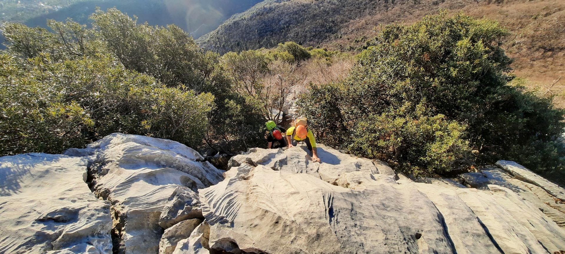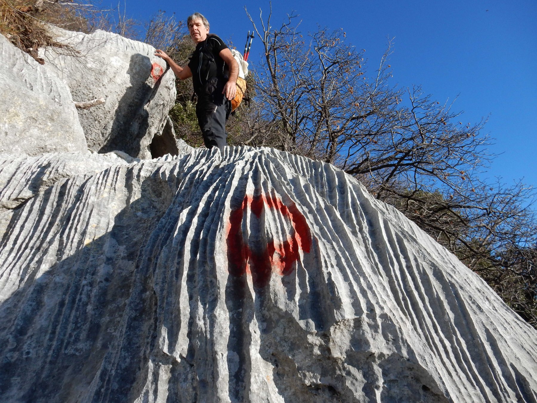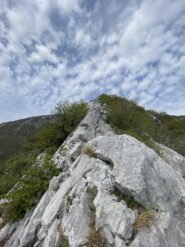 A) si percorre brevemente sui propri passi fino ad intercettare i segnali CAI della cresta sud (difficoltà E/EE), di cui esiste già una descrizione su gulliver.