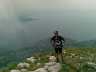 Partenza dal ponte nuovo di Toscolano, sulla statale Gardesana, inizialmente su asfalto verso Gaino, quindi su sterrato nella Valle delle Cartiere , fino a localita’ Camerate, con saliscendi fino al ponte sul fiume Toscolano. Da qui inizia una ripida salida , a tratti su cemento, finoa Palazzo di Archesane ( m. 816) . Lo sterrato continua, con tratti molto ripidi nel bosco, e sconnesso fino ad arrivare al passo Spino (m.1154). quindi a sx( indicazioni per Pizzocolo), su un sentiero che diventa per buoni tratti scarsamente pedalabile , per i gradoni di roccia. Nell’ultimo tratto, superato il bivacco Due Aceri, si arriva alla cima erbosa del Pizzocolo con panorama su tutto il lago di Garda.