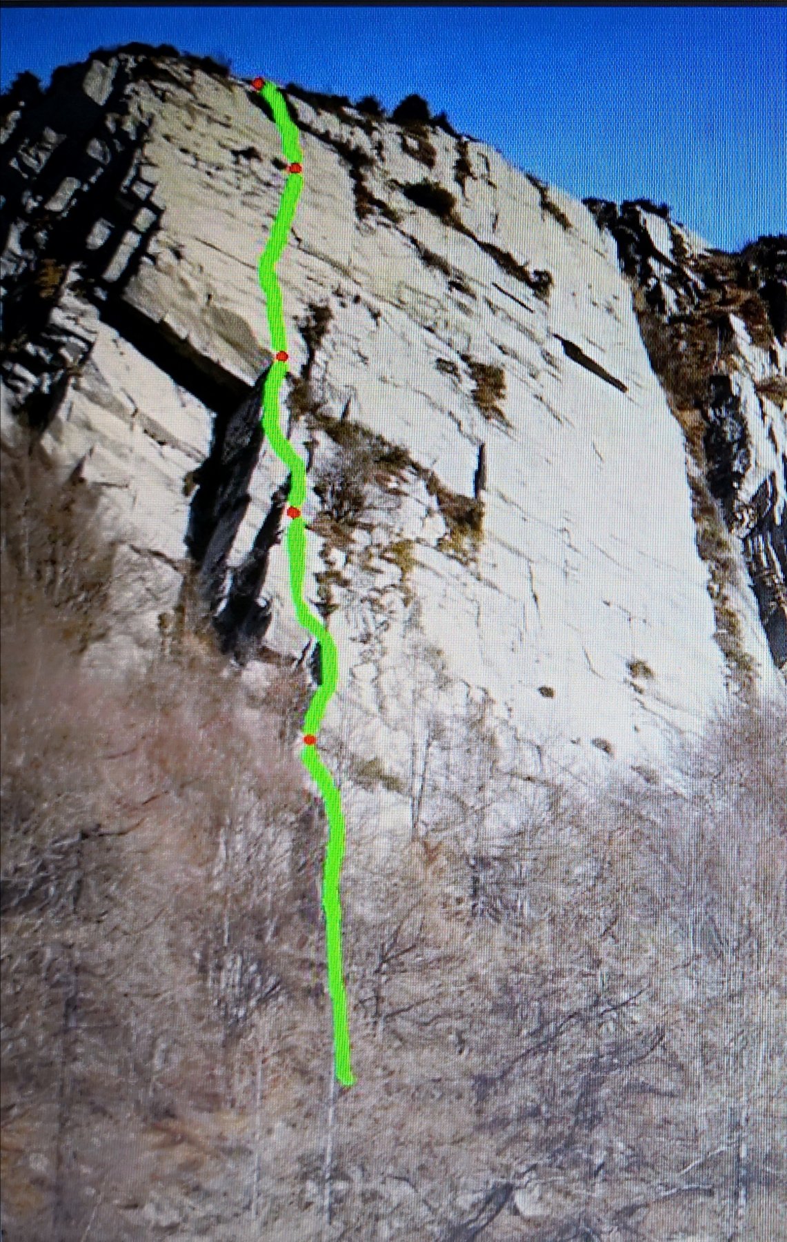 L5 : placca delicata salendo progressivamente diventa più facile fino a congiungersi con la via Legati per sempre. Sosta in comune. 20m. 6a