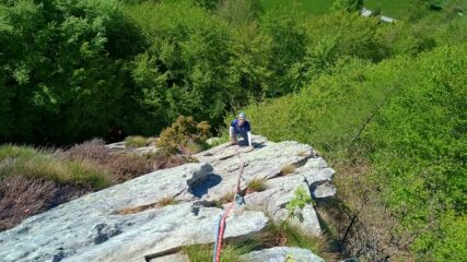 È possibile scendere a piedi tramite sentiero sulla sx che vi porta alla base oppure effettuare doppie.