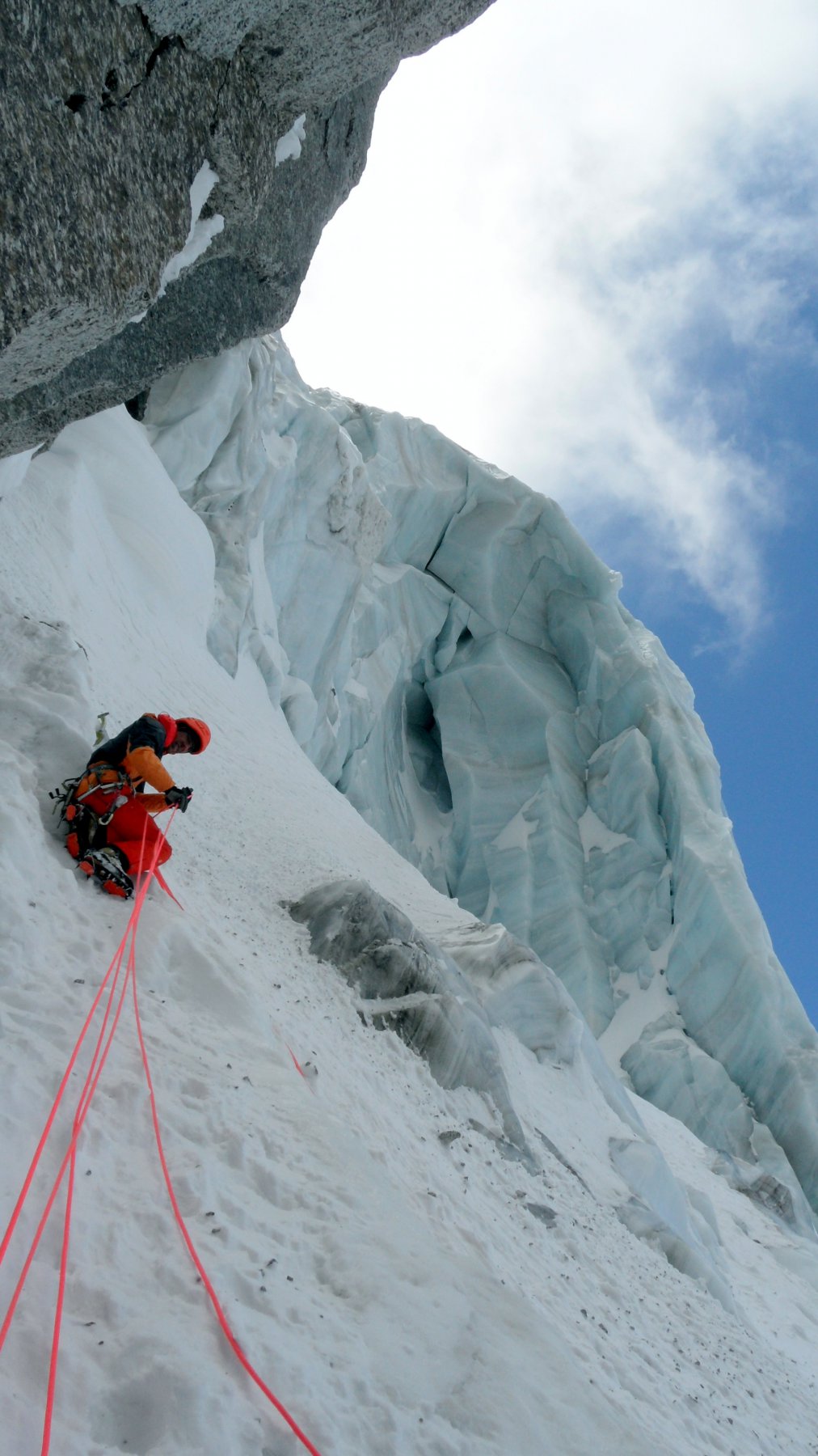 itinerario esclusivamente di ghiaccio che puo’ presentare serie difficolta’ a seconda dello stato del ghiacciaio che si presenta molto crepacciato nella seconda parte.