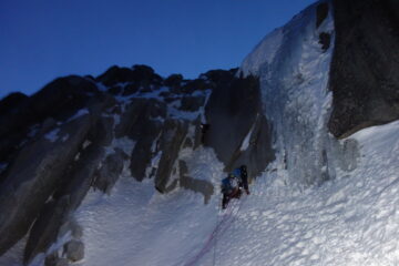 Via molto affollata. Siamo fortunatamente riusciti ad accaparrarci la pole position, partendo per le 4:40 dal Plan (invernale pieno!). Alla Midi alle 12:35.